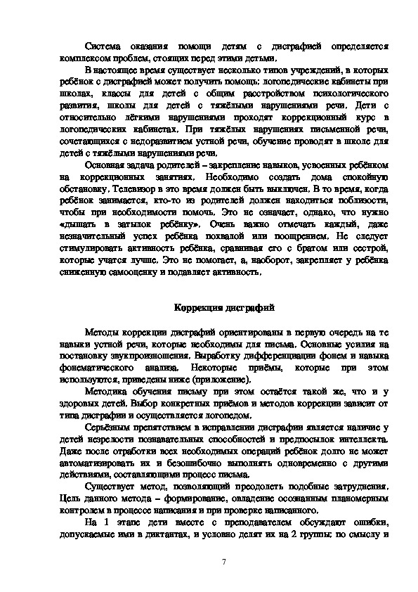 Нарушение письма (дисграфия) составляет значительный процент среди других нарушений речи, отмечаемых в начальной школе. Она является серьёзным препятствием в овладении учащимися школьной программой. Коррекция нарушений письма требует длительного времени и большого напряжения сил учащихся. Желательно как можно раньше выявить дисграфию у детей для успешного исправления у них письменной речи.статья