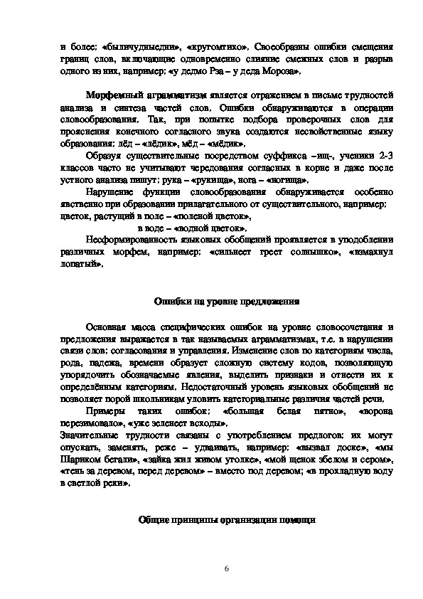 ошибок: пропуск, перестановка, вставка букв либо слогов.