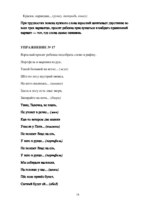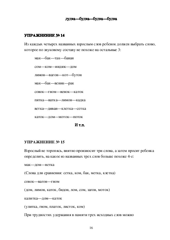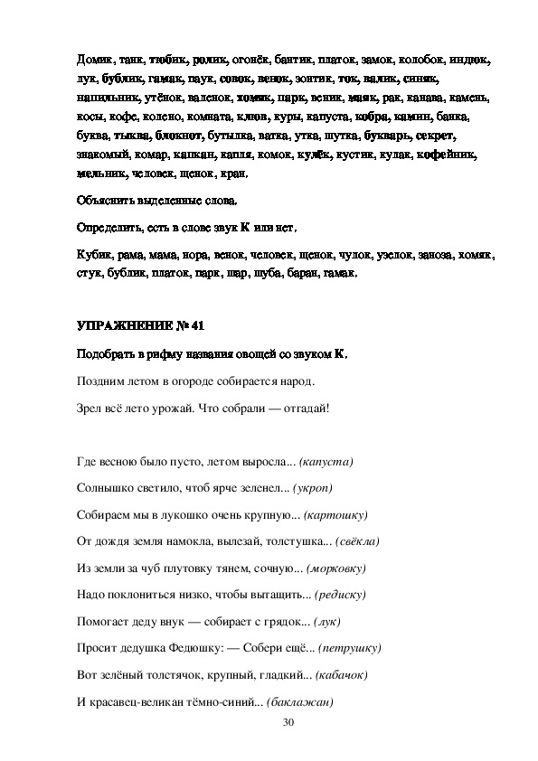 кепка, кивать — копать, урожай — попугай, ласты — паста, жук — паук,