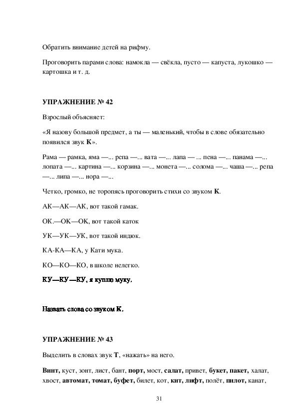 слова всех его звуковых компонентов, например «снки» – санки, «кичат» –