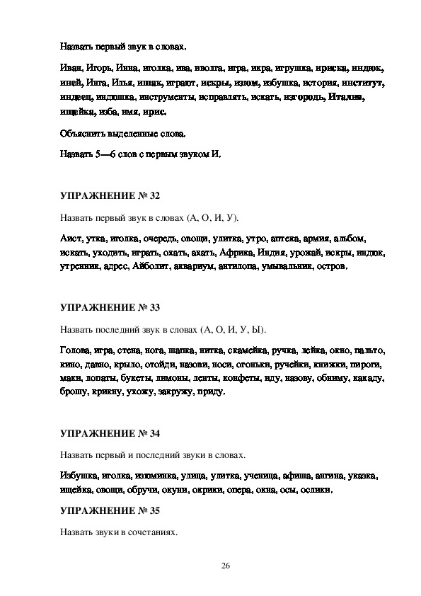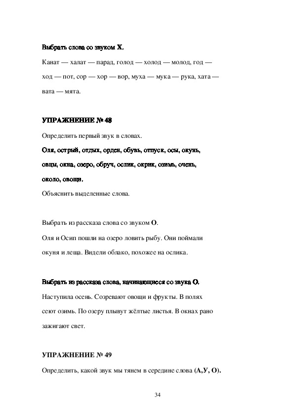 Выбрать из рассказа слова, начинающиеся со звука О.