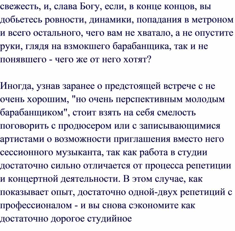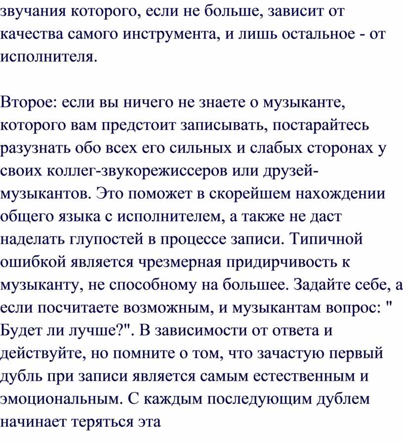 нужно работать, чтобы достичь приемлемого исполнения. Когда музыканты