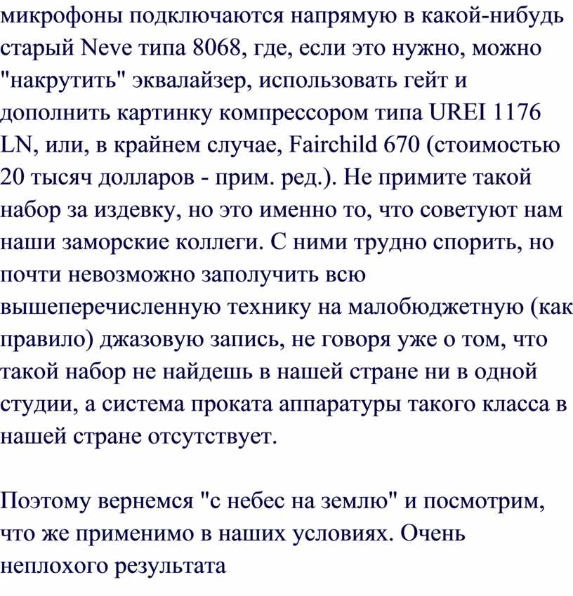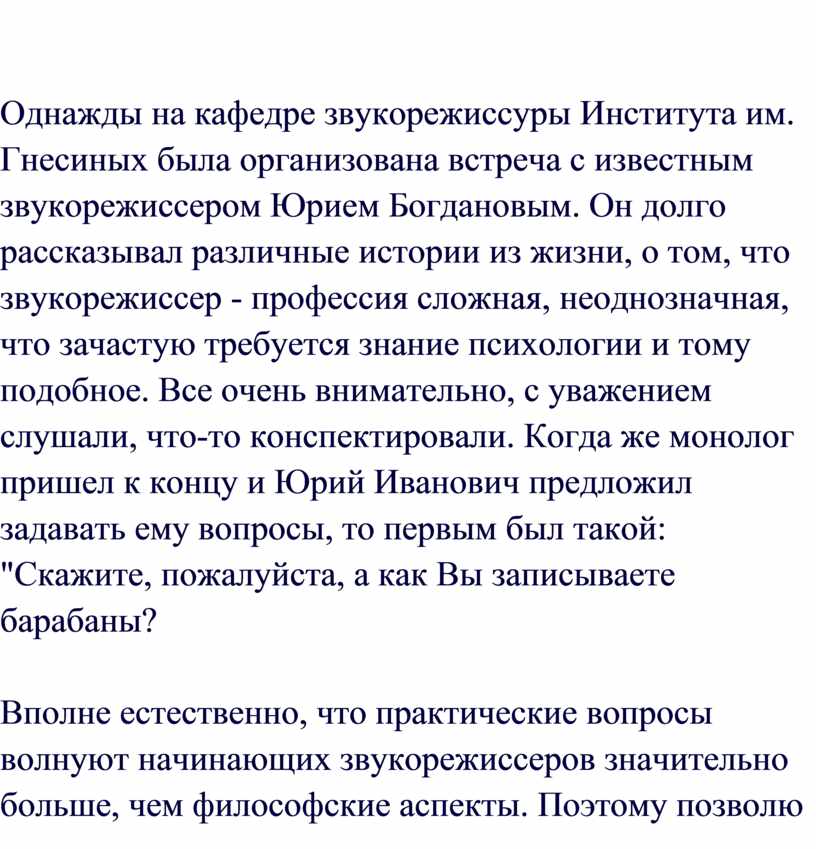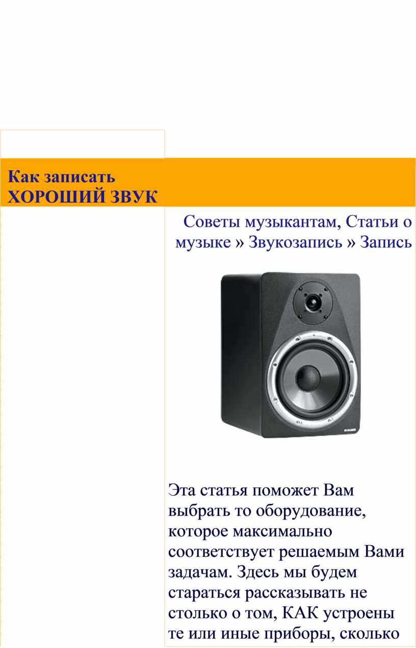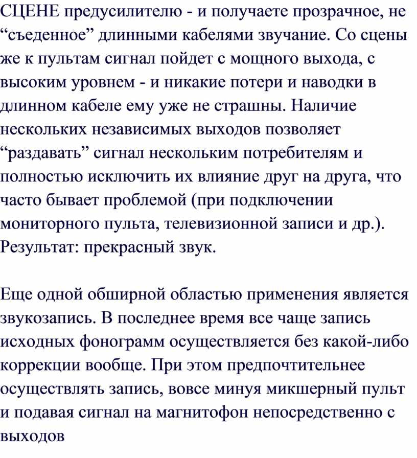отсутствие посторонних шумов и искажений. То, что все это – забота инженера,