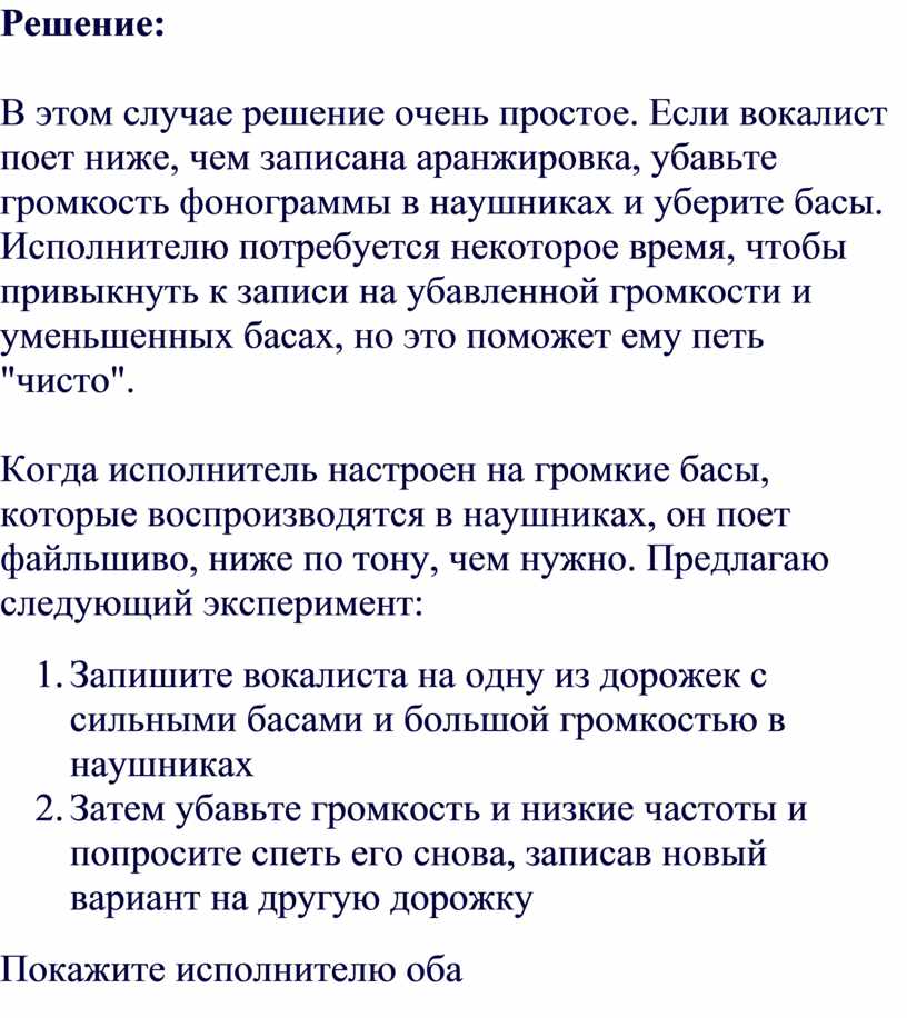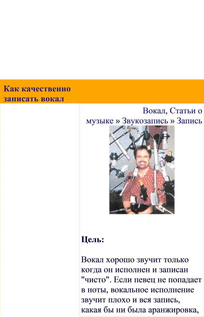 (ни слишком высокий, ни слишком низкий), техника обращения с микрофонами,