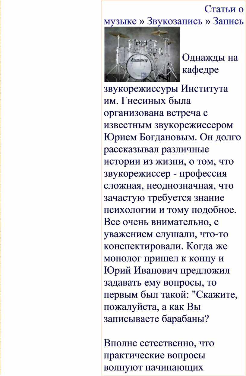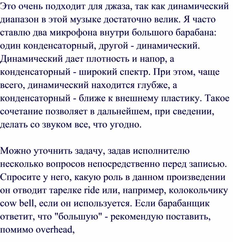 пытаются достичь хорошего качества звучания барабанов, из-за большого