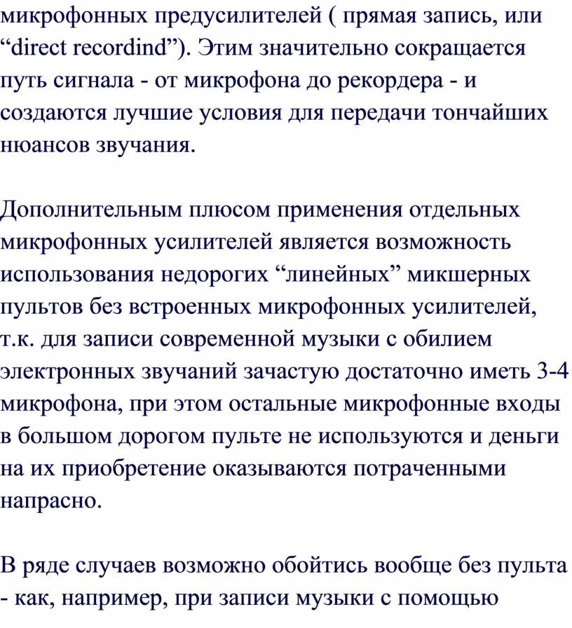 количества времени, необходимого на их настройку. Если звукозаписывающая