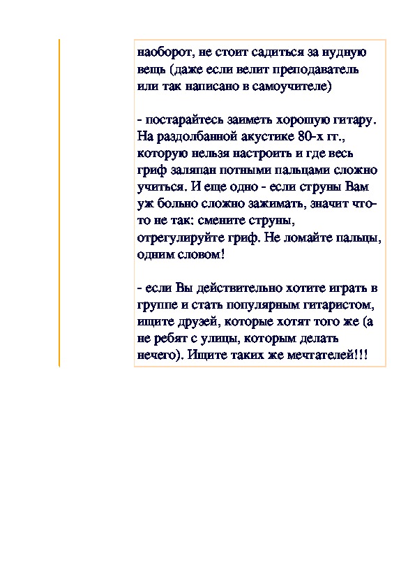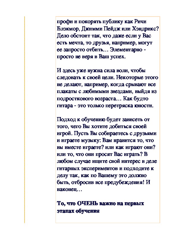 Такие вопросы он может задавать явно или они могут волновать его где-то в глубине души. Все дело в том, что от того как он ответит на них, зависит весь дальнейший ход его обучения. Ждет ли его успех и он станет гитаристом-мастером? Или потренькает пару годков и бросит?