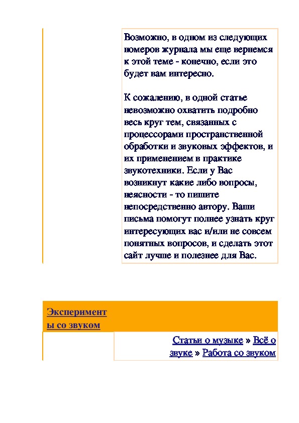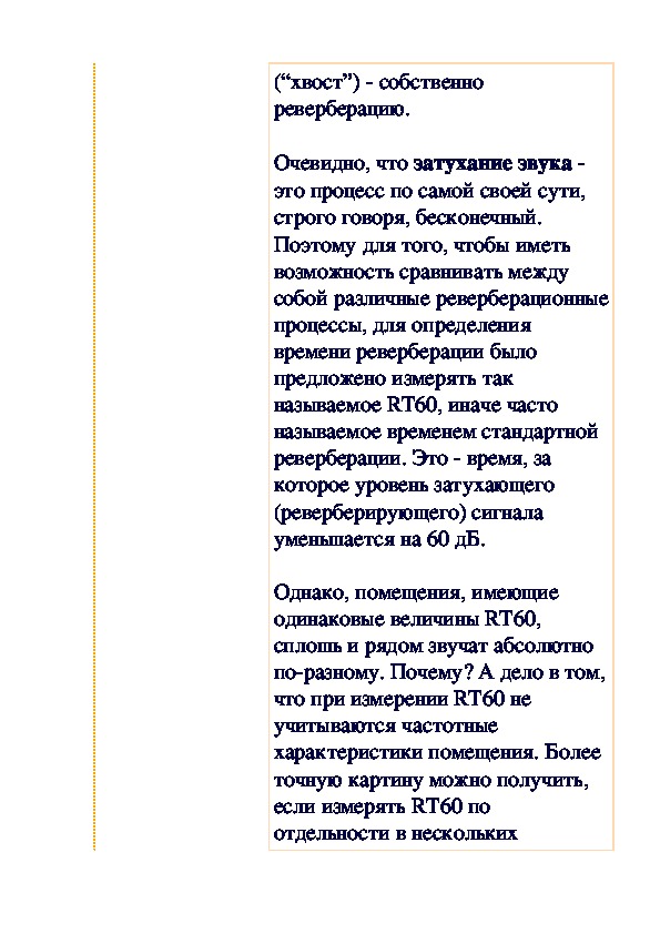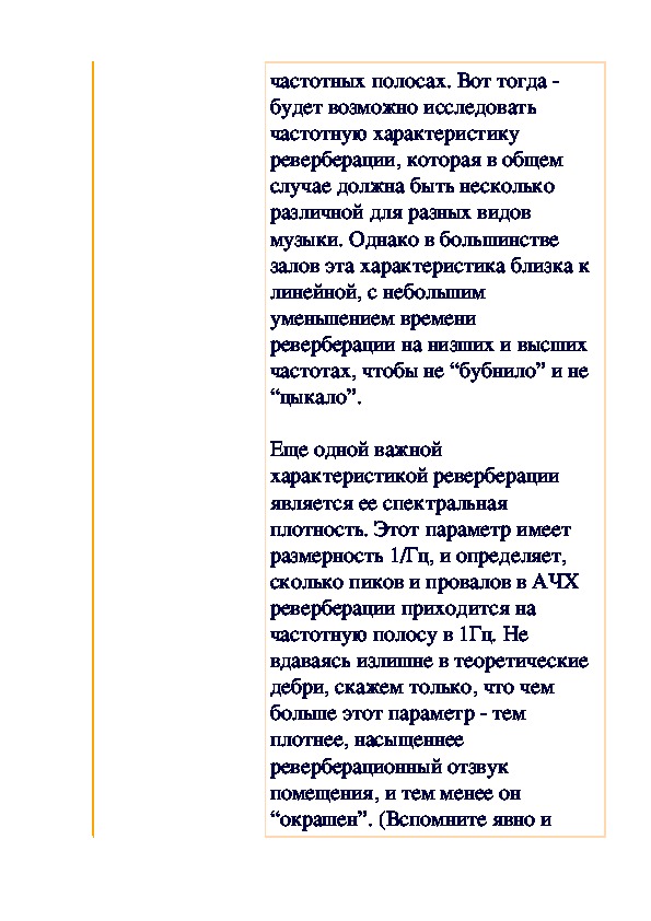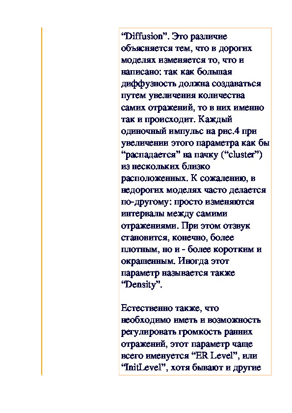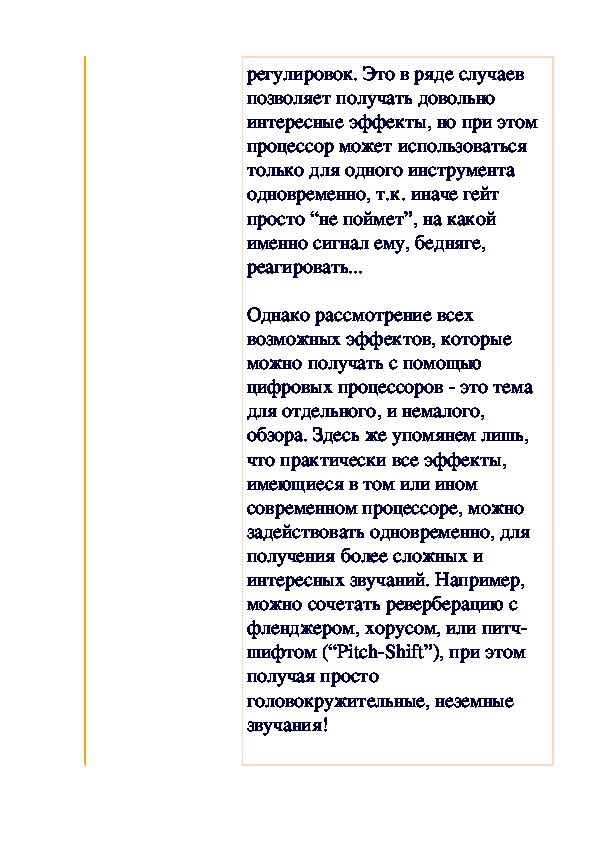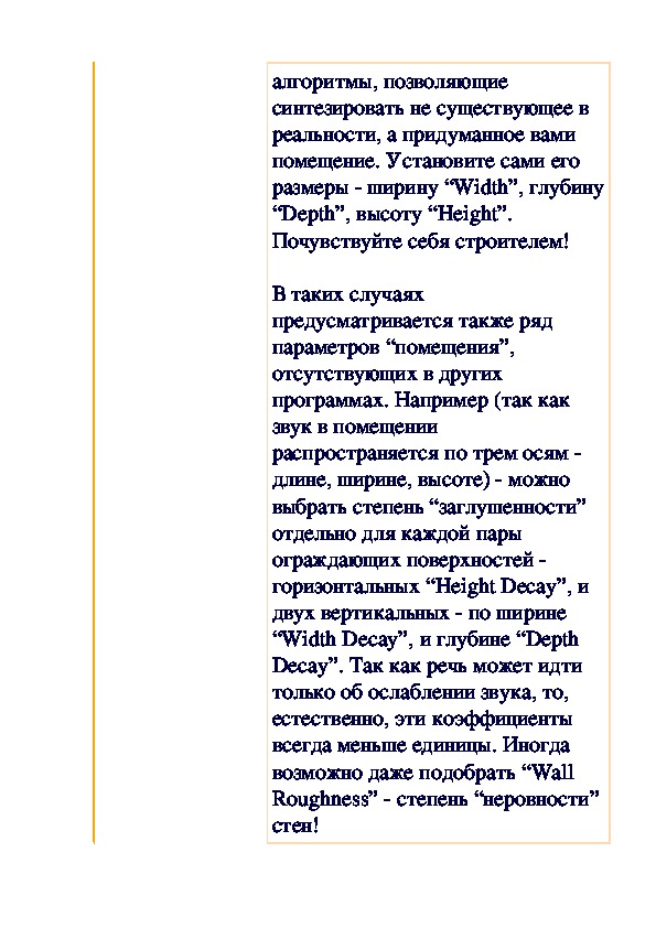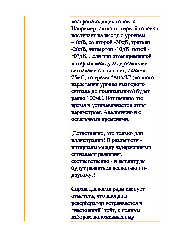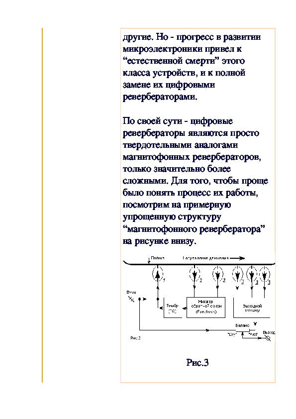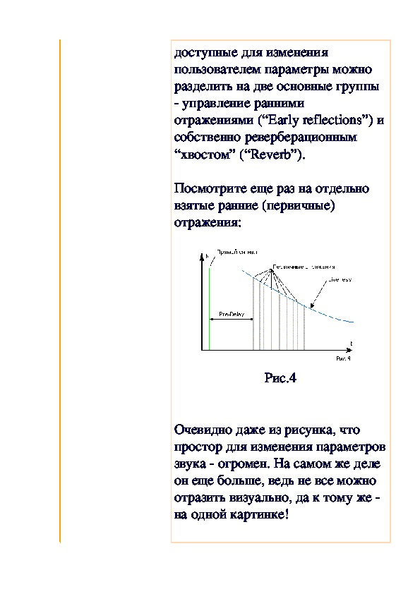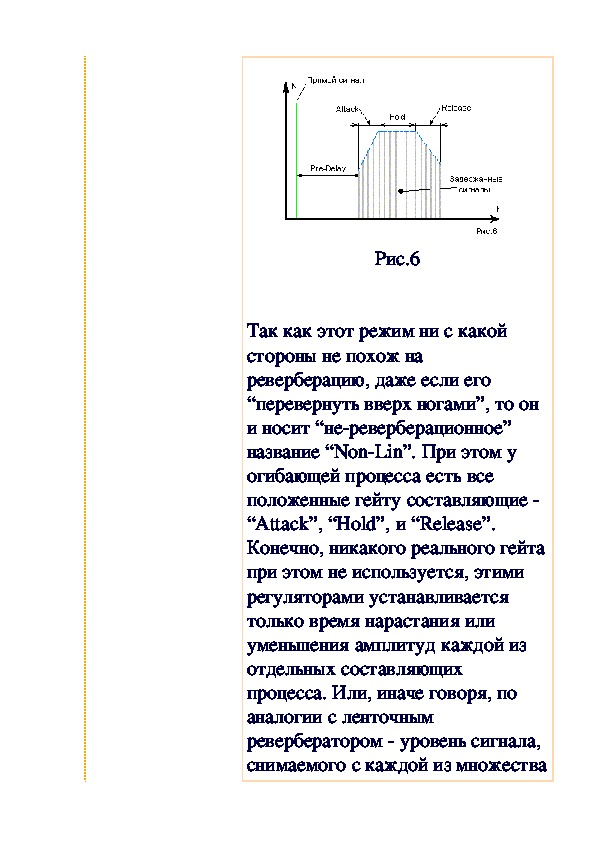Процессоры пространственной обработки сигналов - чаще не совсем строго называемые просто ревербераторами - являются неотъемлемой частью любой современной студии и концертного зала. Своим появлением они обязаны повсеместному внедрению электроники - микрофонов, усилителей, и пр. - в практику звукозаписи и звукоусиления. Как только музыка вышла за пределы оперной сцены и академических концертных залов - начались поиски новых выразительных средств и художественных приемов, для получения оригинальных звучаний и создания спецэффектов. На этом пути ревербераторы были самым первым и естественным шагом. Действительно, ведь далеко не каждый зал обладает реверберацией - к примеру - как в Домском соборе или Тадж-Махале! Системы искусственной реверберации сняли эти ограничения. Путем моделирования, простого копирования, или синтеза характеристик не существующих в реальности помещений – стало возможно практически в любом месте получить нужные вам звучания. Современные процессоры позволяют, кроме разнообразных видов реверберации, более-менее похожих на естественные, создавать и целый ряд звучаний, которые в принципе невозможно получить в естественных условиях, но без которых палитра выразительных средств современной музыки стала бы сильно обедневшей - таких, как GATE REVERB, INVERS REVERB, и некоторых других.