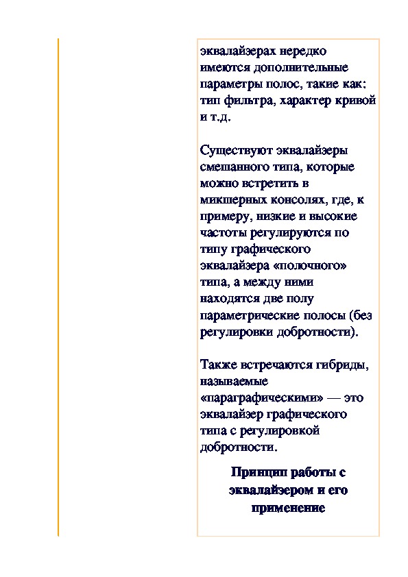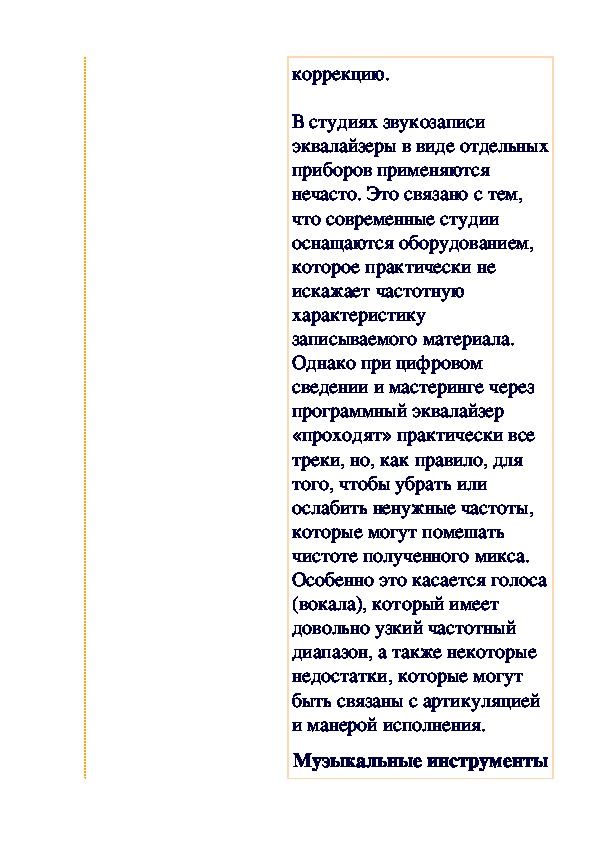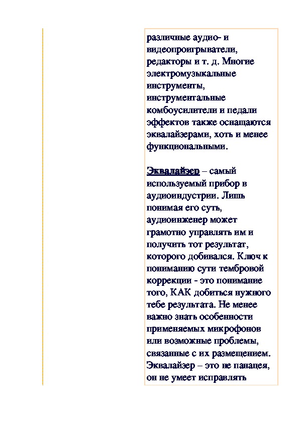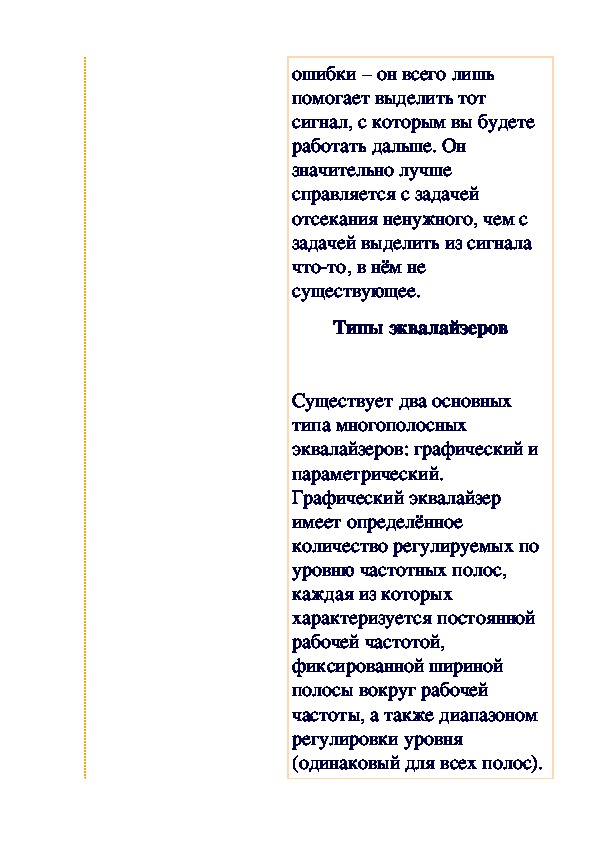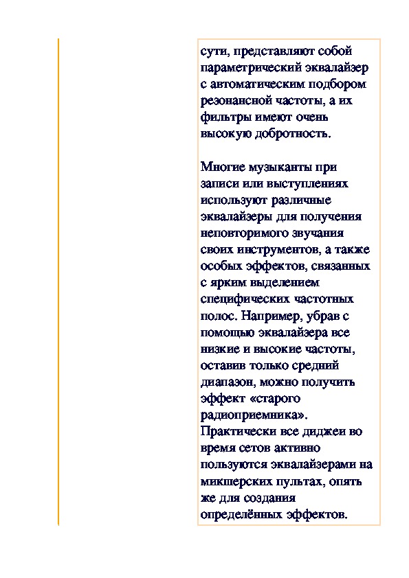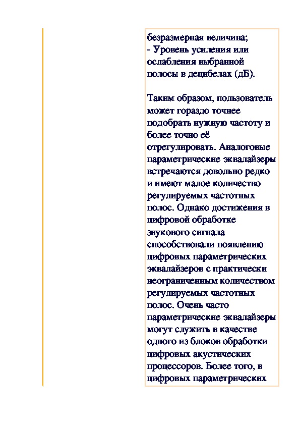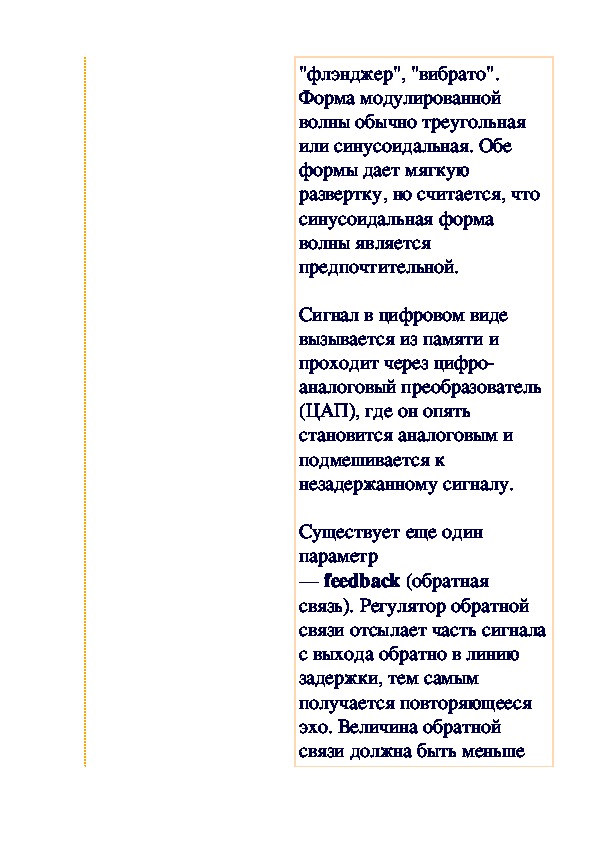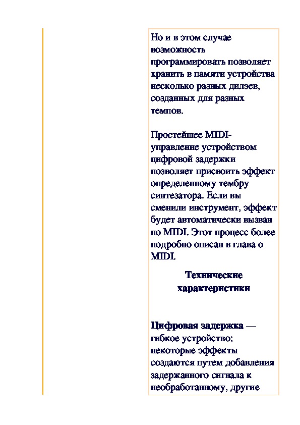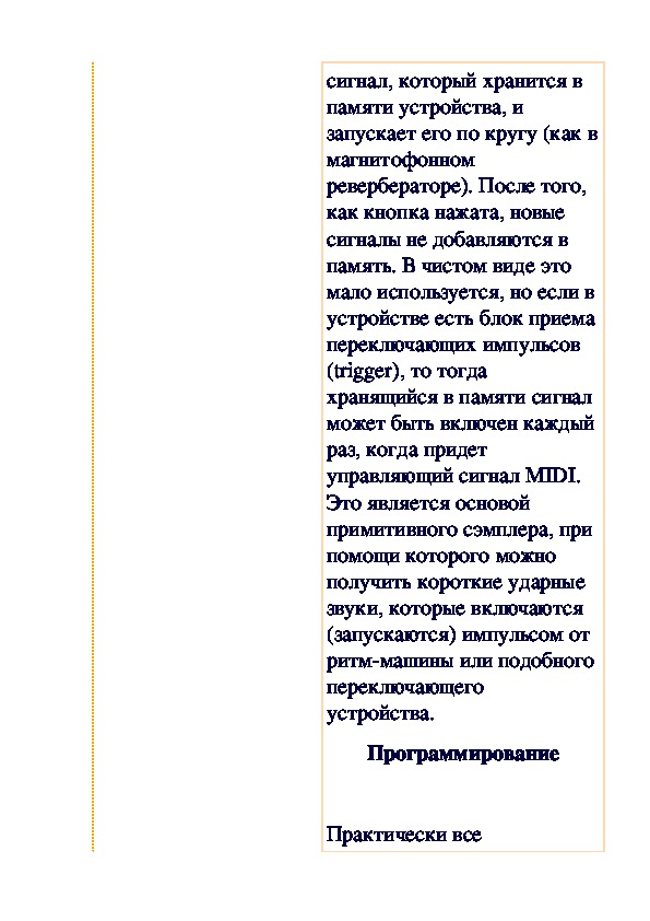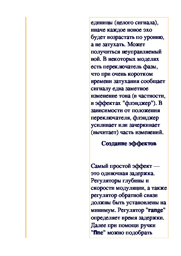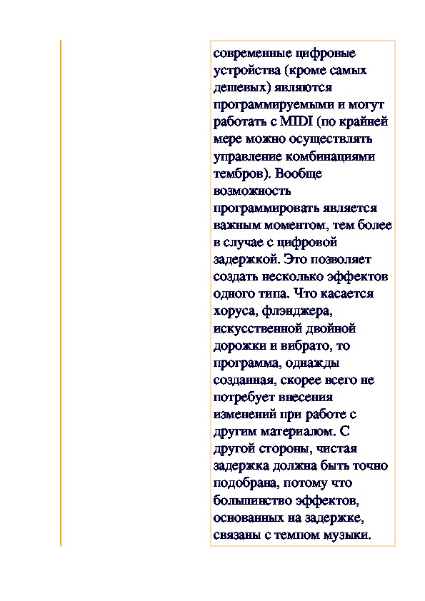 Большинство компрессоров и гейтов устроены на основе аналоговых цепей. Большая часть всех эффектов, которые применяют изменение времени в любой форме, основаны на цифровой электронике: дилэи, ревербераторы, pitch shifters (устройства сдвига высоты сигнала), процессоры мультиэффектов и т.д. Прежде чем рассматривать работу какого-либо конкретного процессора, надо иметь представление о том, как вообще работает цифровая система (это поможет понять многое из того, что написано в технической документации подобных устройств).