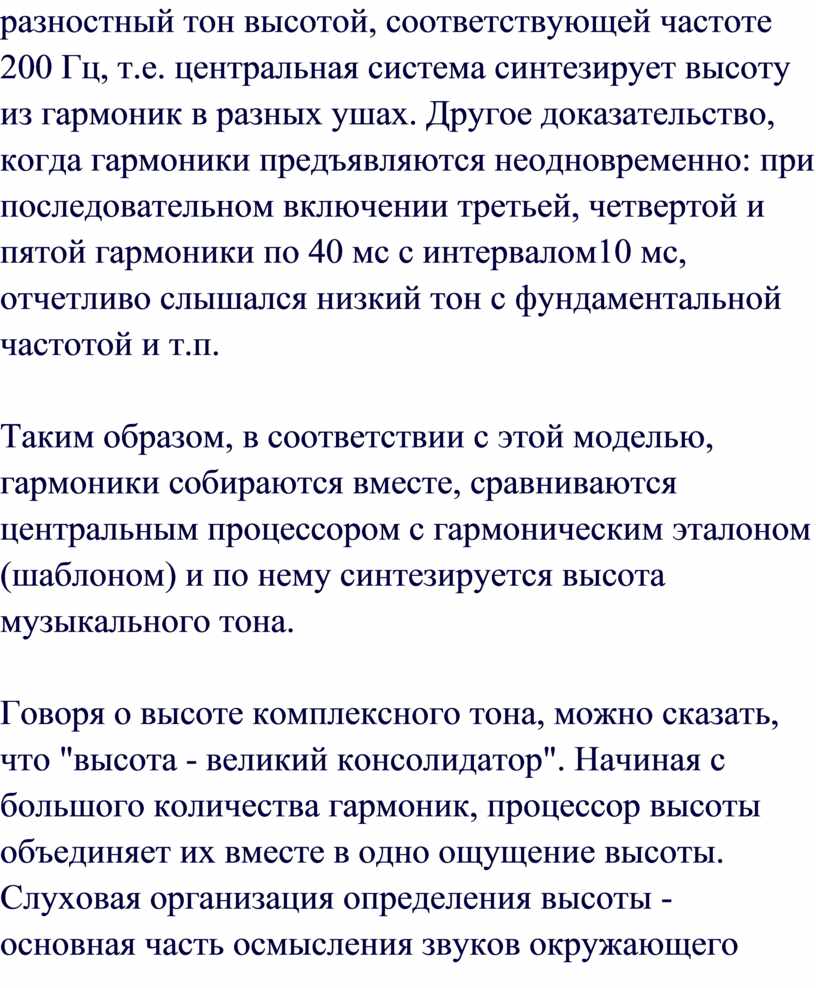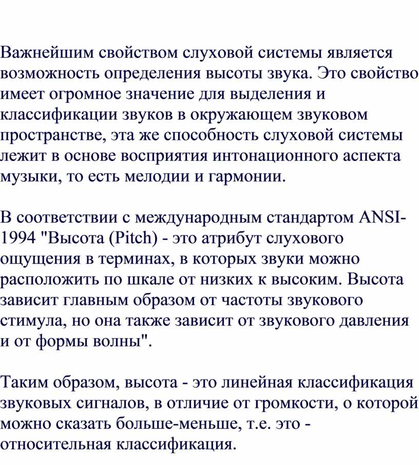 Таким образом, способность слуховой системы воспринимать определенные