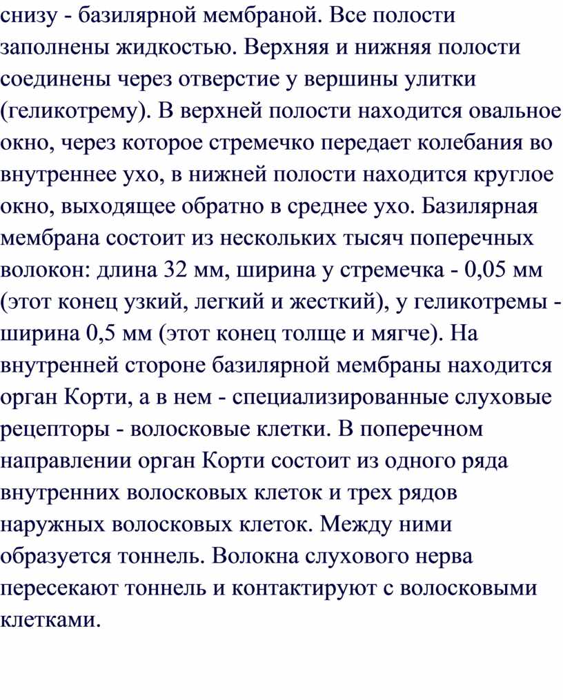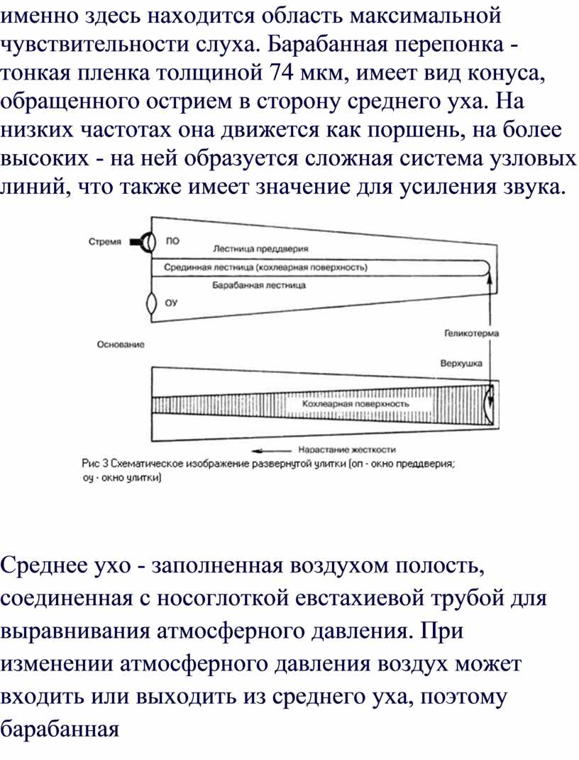 (согласовывает) барабанную перепонку с внешним звуковым полем. Основные