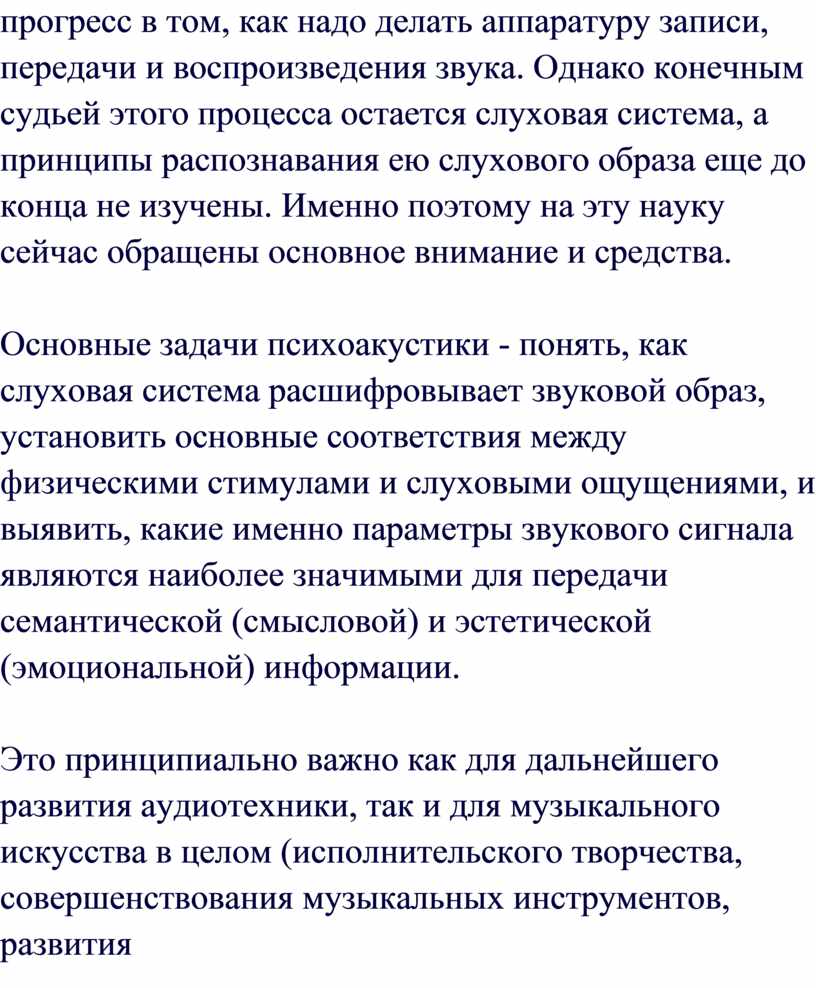 Основные задачи психоакустики - понять, как слуховая система расшифровывает