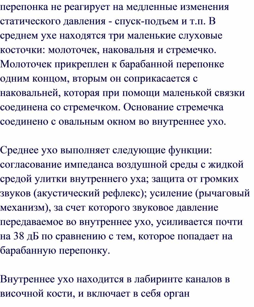 давления - спуск-подъем и т.п. В среднем ухе находятся три маленькие слуховые