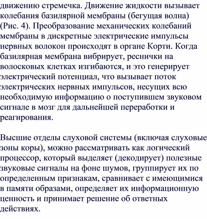 процессы преобразования звуковых сигналов в периферической части слухового