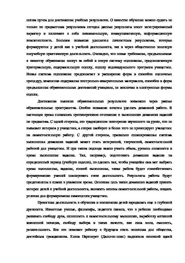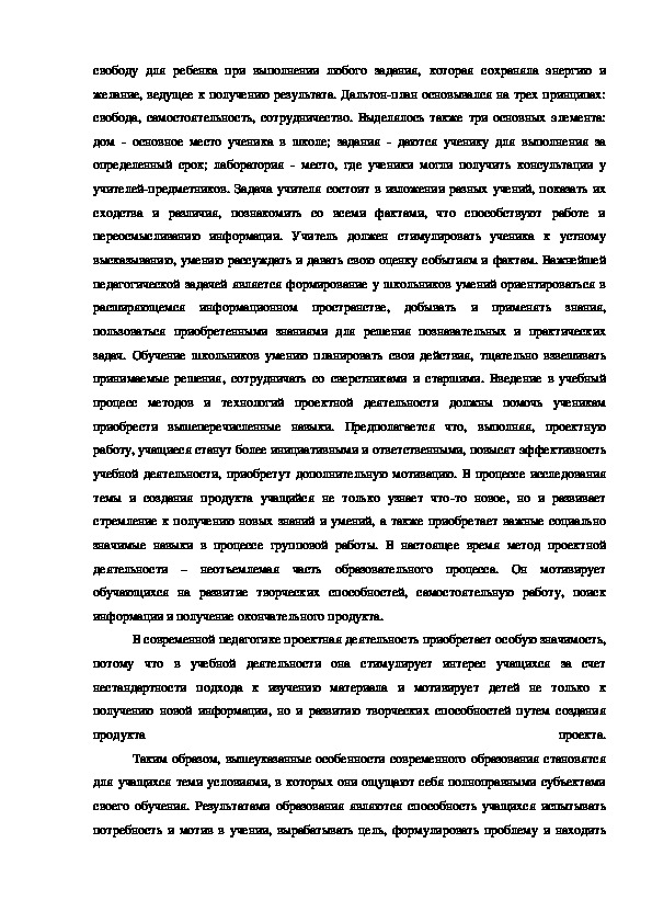 достойным гражданином. Елена Паркхерст (Дальтонплан) выдвигала основной идеейсвободу для ребенка при выполнении любого задания, которая сохраняла энергию и