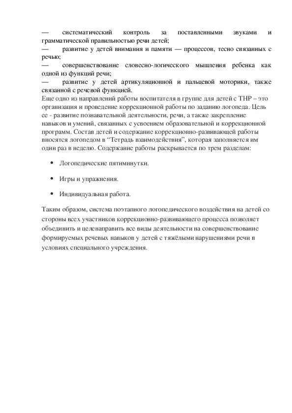 Еще одно из направлений работы воспитателя в группе для детей с ТНР – это