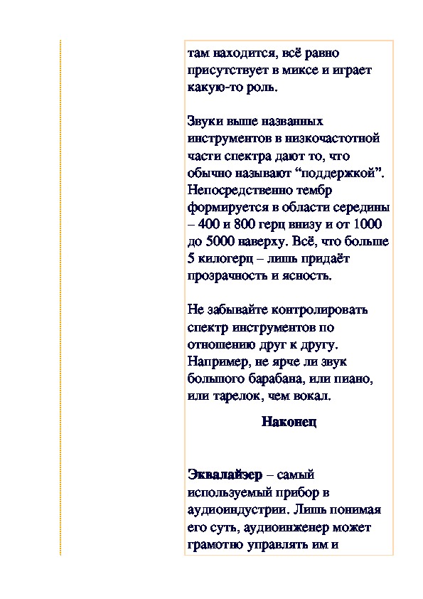 эквалайзингом и фильтрованием