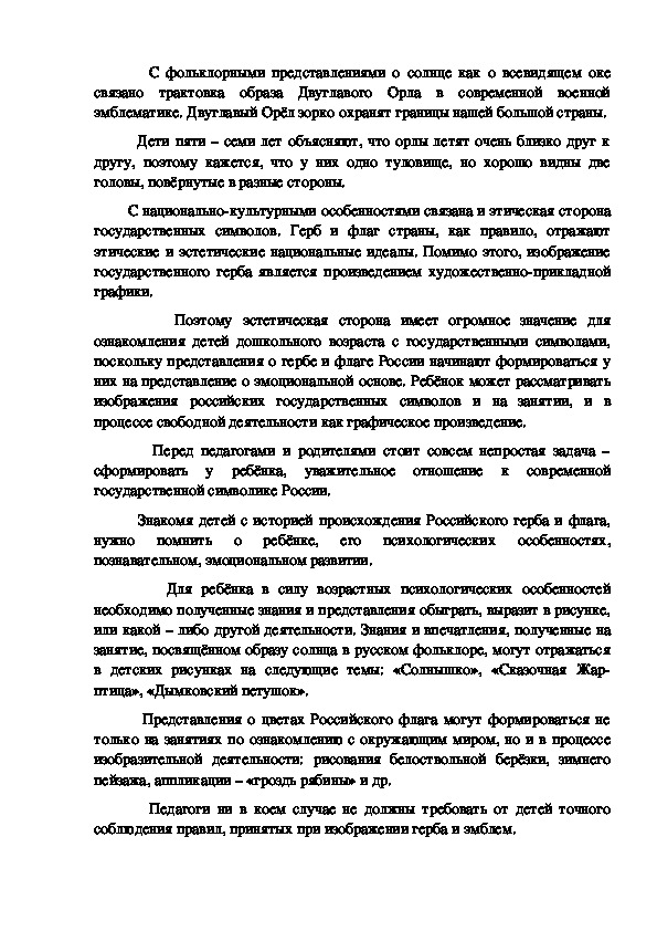 изображением герба и флага. Дети в этом возрасте далеко не всегда могут