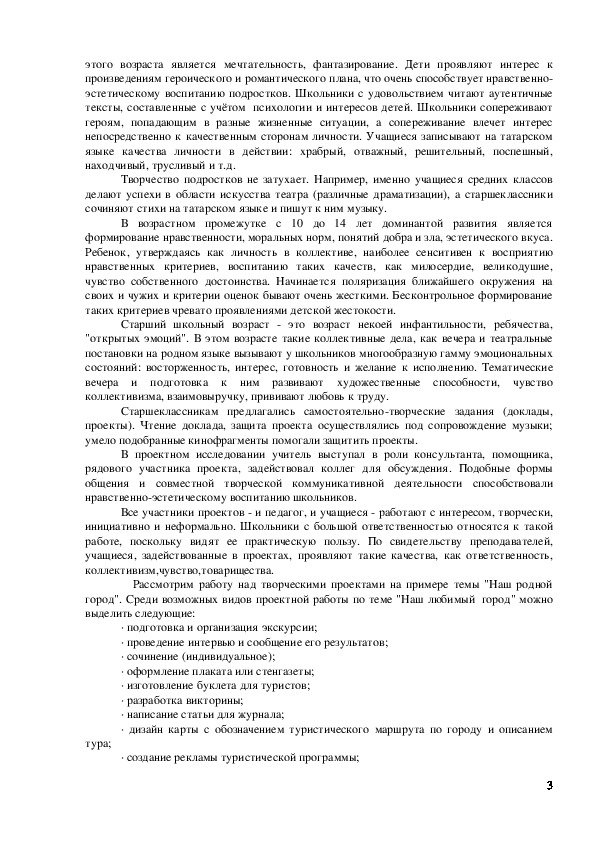 Казани, Елабуги, воспитательный аспект – осознание понятия Родина, “малая Родина”,