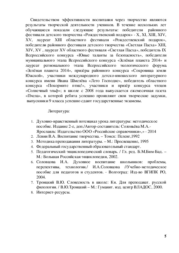 6. Соловцова И.А. Духовное воспитание школьников: проблемы,