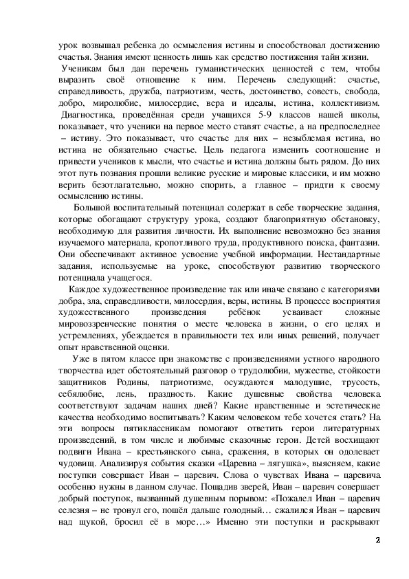 1урок возвышал ребенка до осмысления истины и способствовал достижению