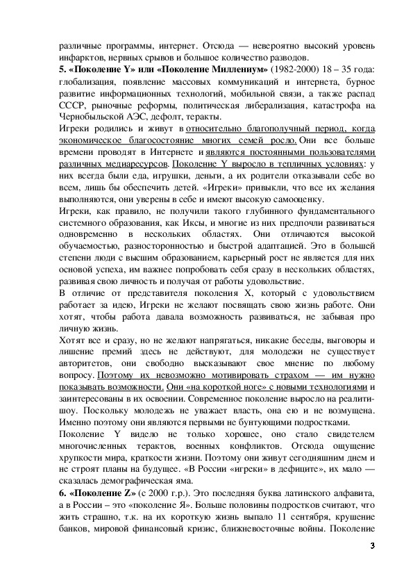 различных медиаресурсов. Поколение Y выросло в тепличных условиях: у