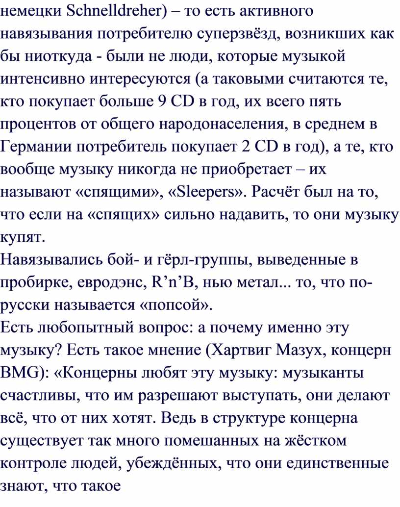 (Хартвиг Мазух, концерн BMG): «Концерны любят эту музыку: музыканты