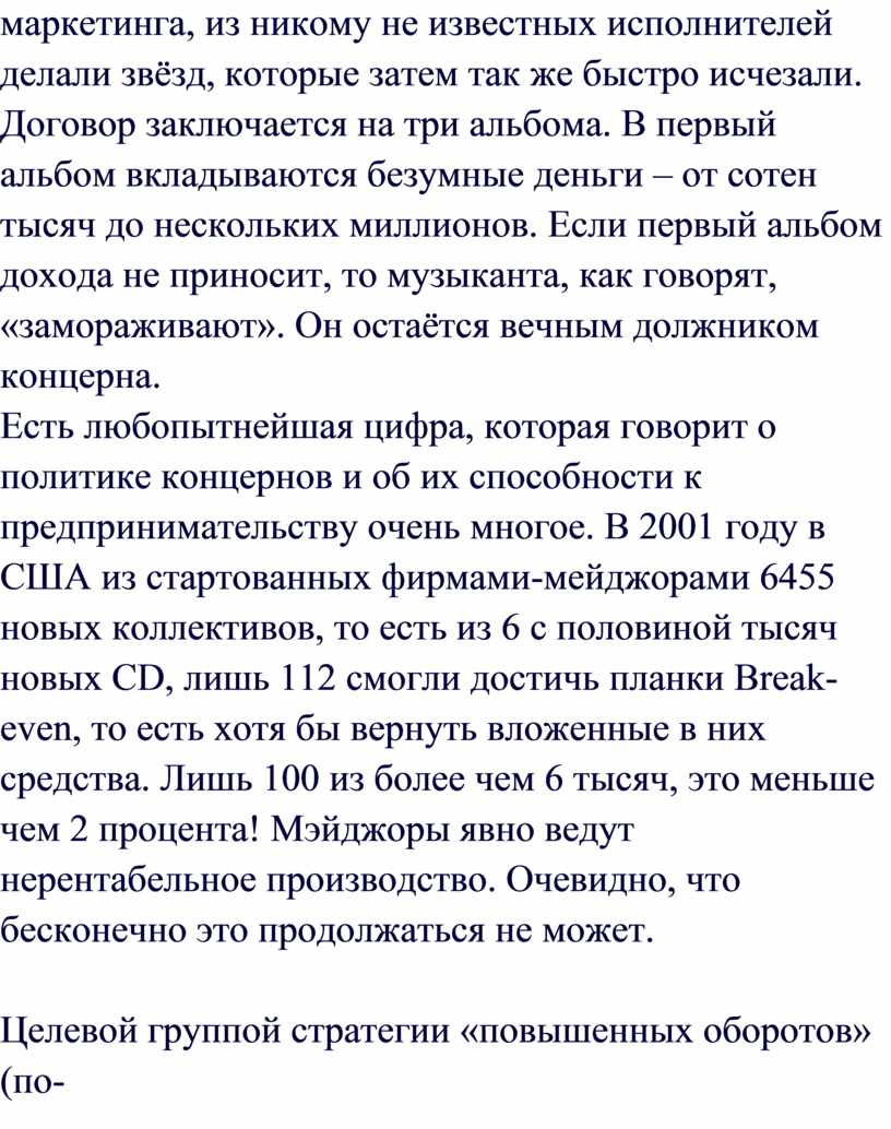 чем 2 процента! Мэйджоры явно ведут нерентабельное производство. Очевидно,