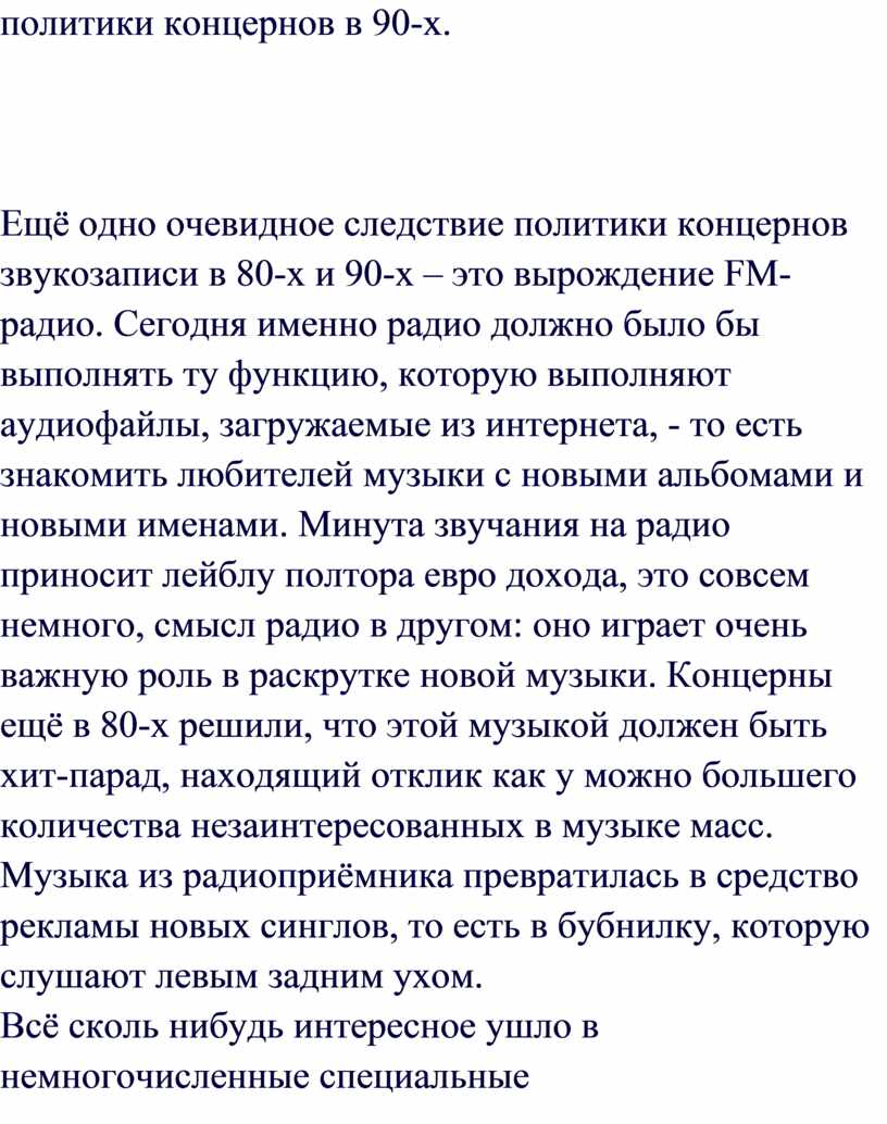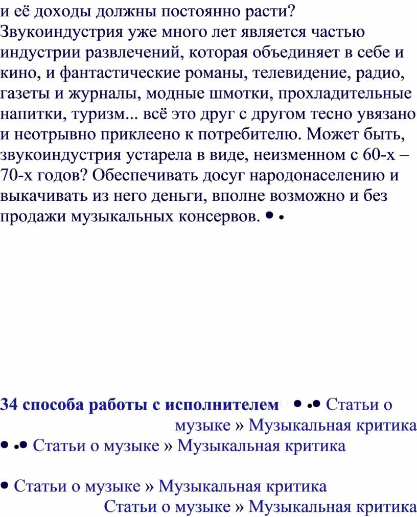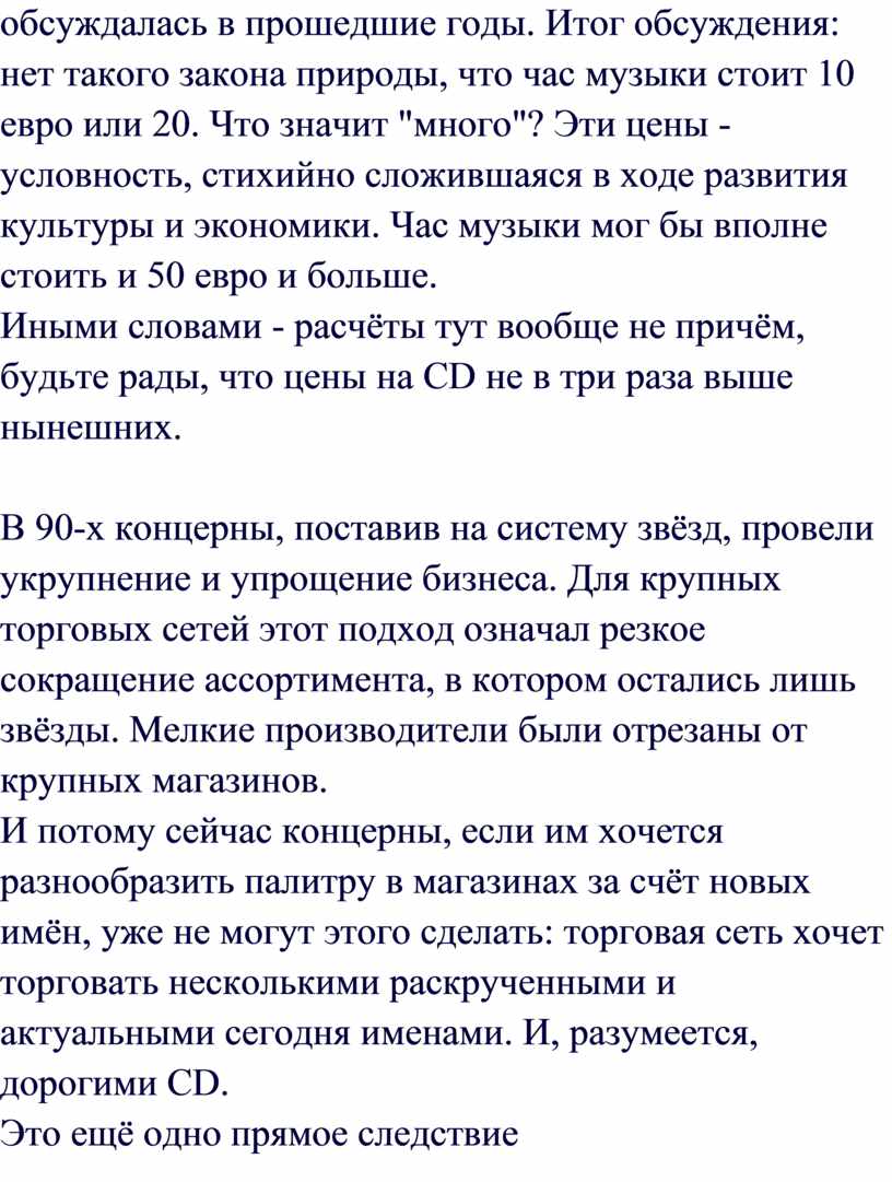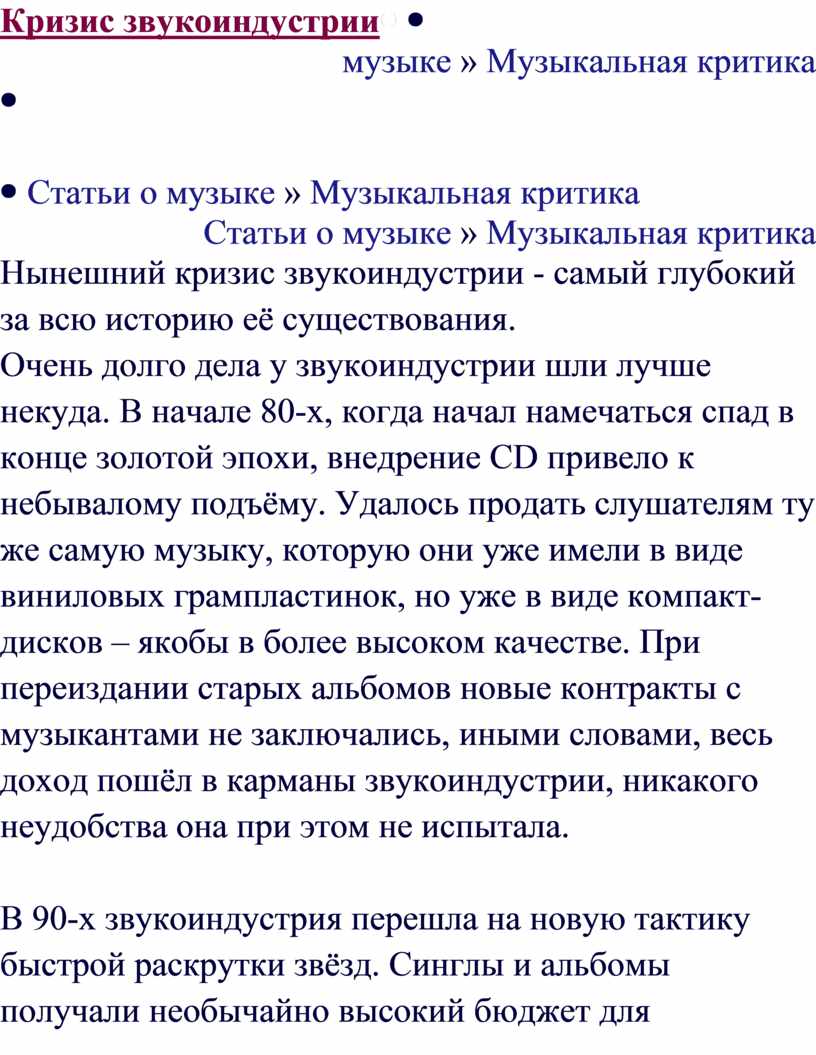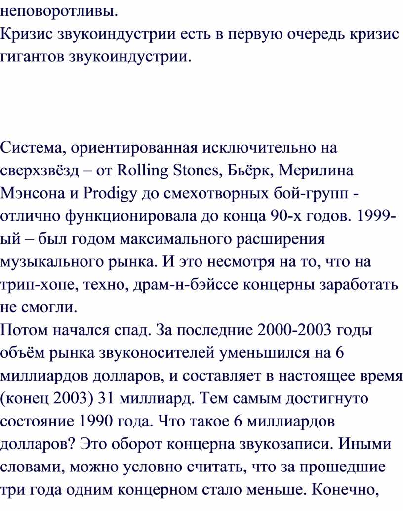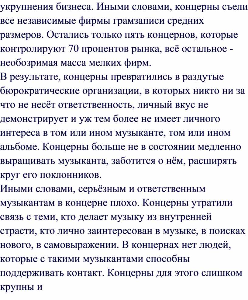 музыканте, том или ином альбоме. Концерны больше не в состоянии медленно