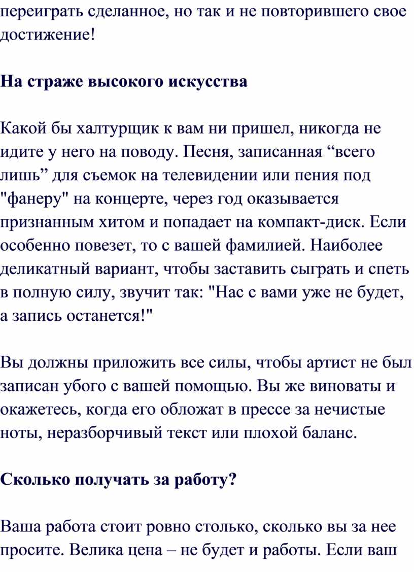 приносит, то музыканта, как говорят, «замораживают». Он остаётся вечным