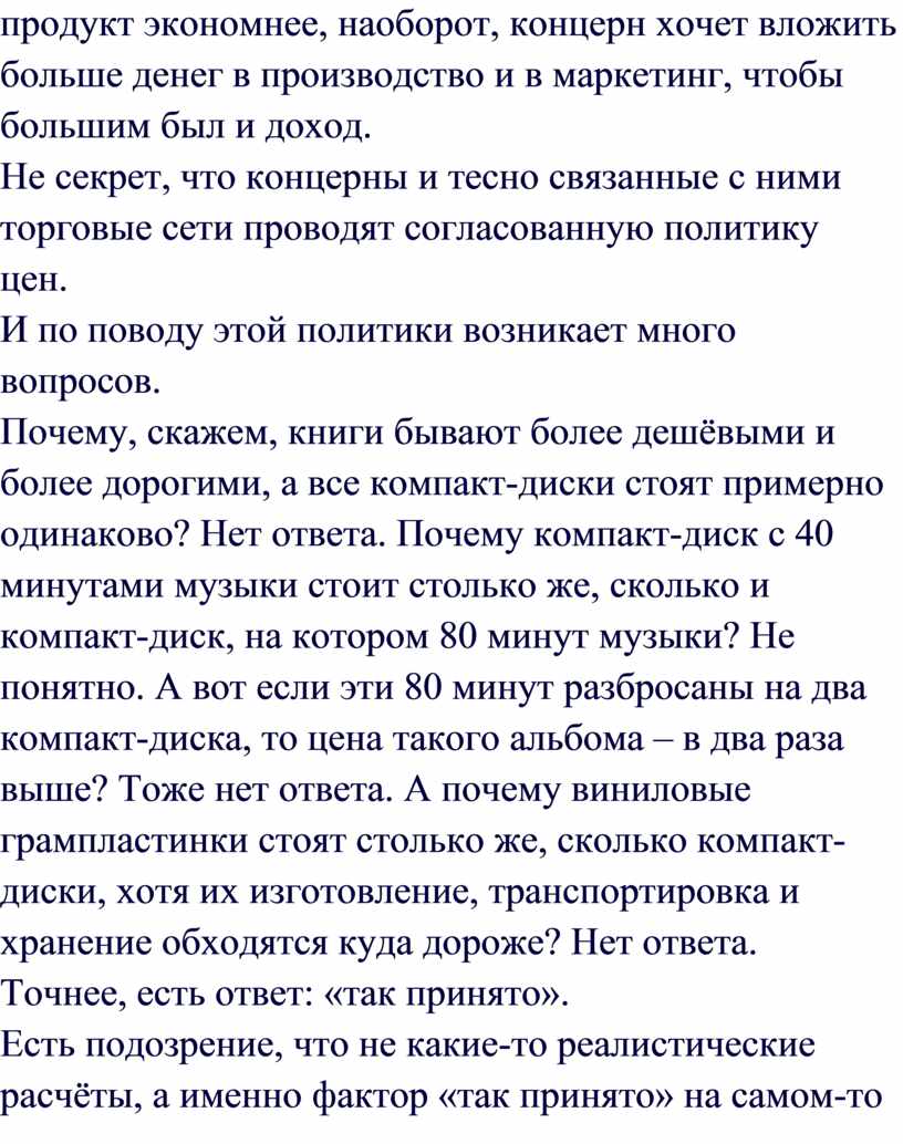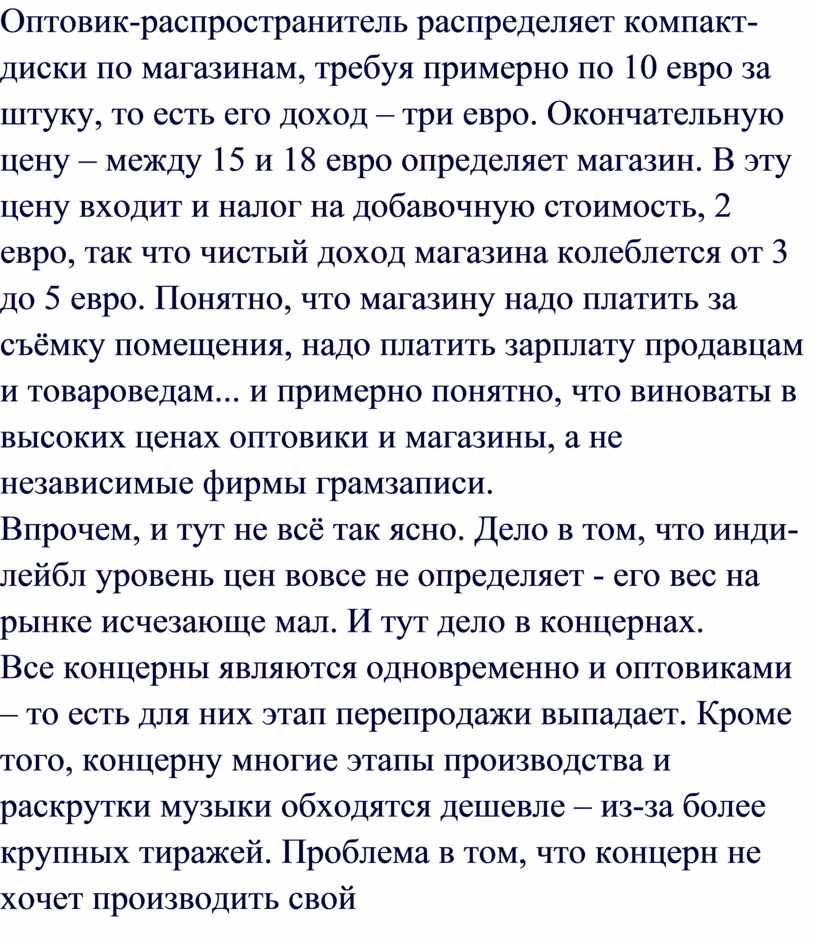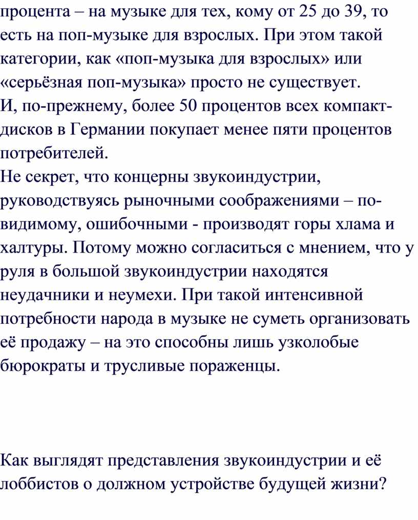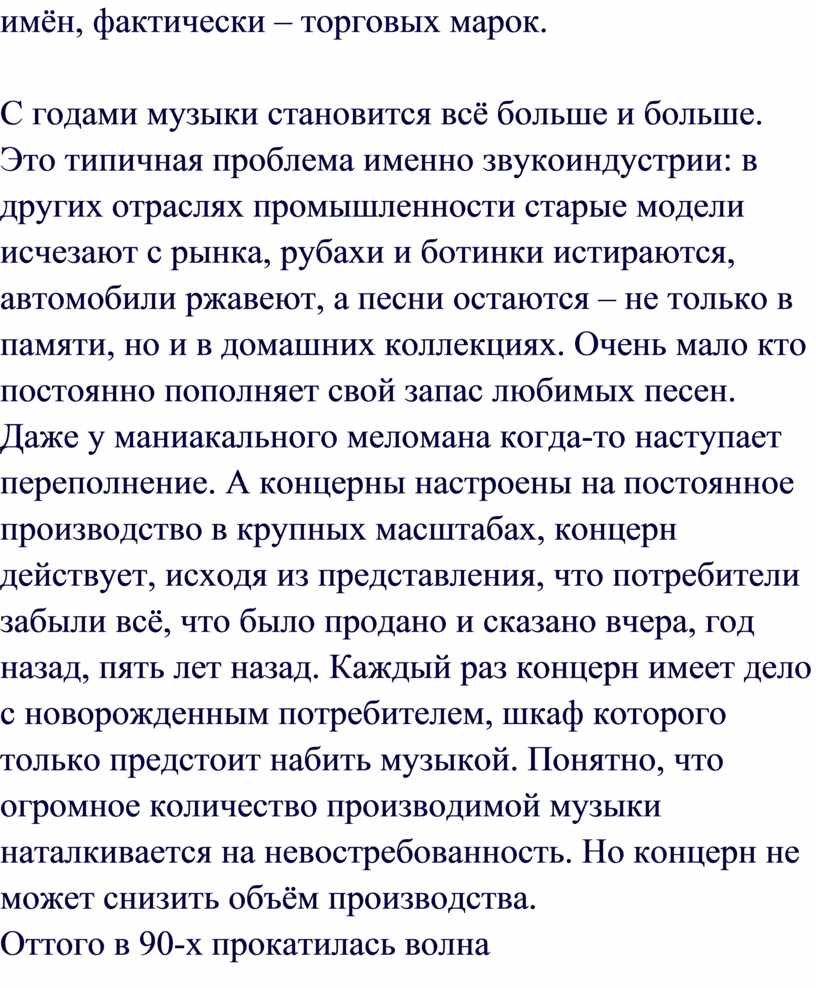 производимой музыки наталкивается на невостребованность. Но концерн не может