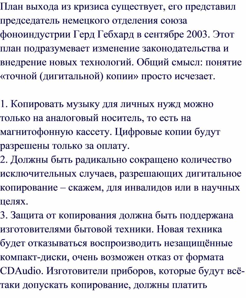 отделения союза фоноиндустрии Герд Гебхард в сентябре 2003. Этот план