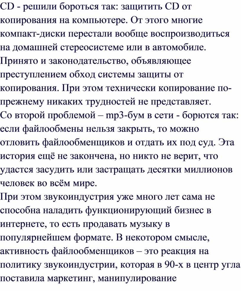 стеклодувную промышленность! Слушая мп3 или копируя CD, ты разоряешь