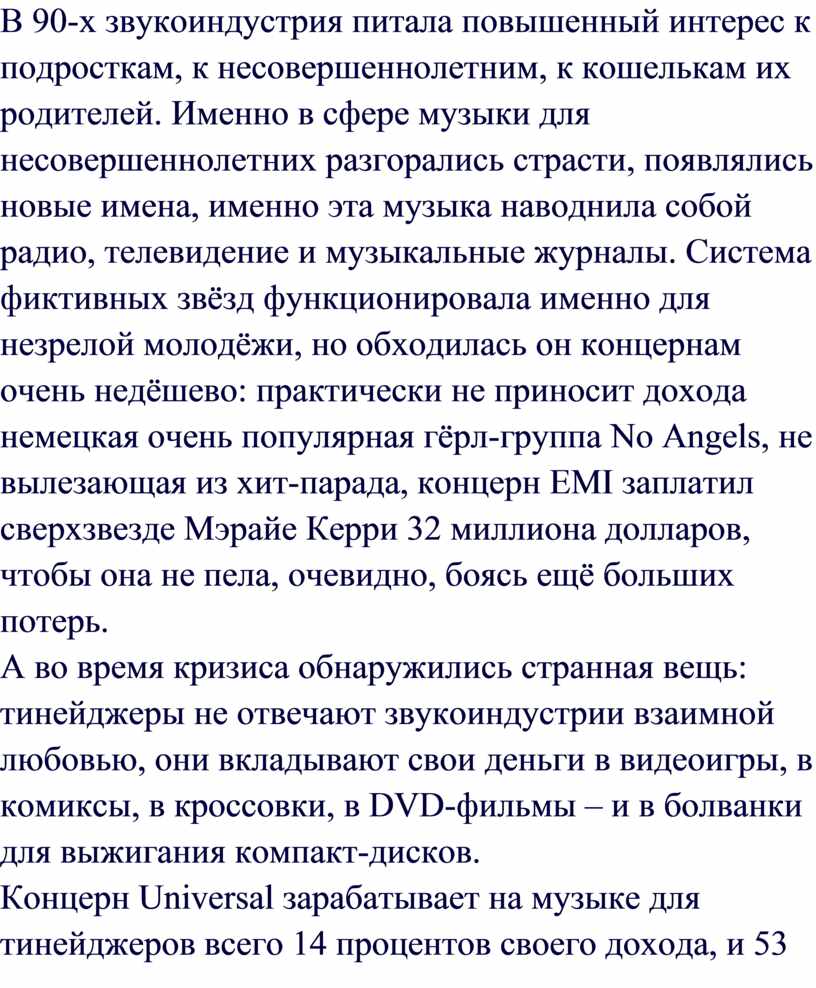 Концерн Universal зарабатывает на музыке для тинейджеров всего 14 процентов