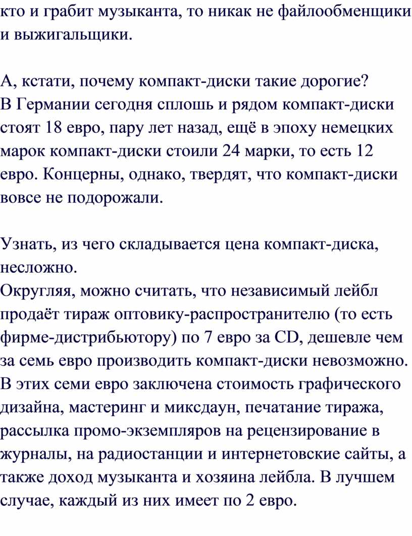 виду, очевидно, что если ты покупаешь музыку у концернов звукозаписи, ты