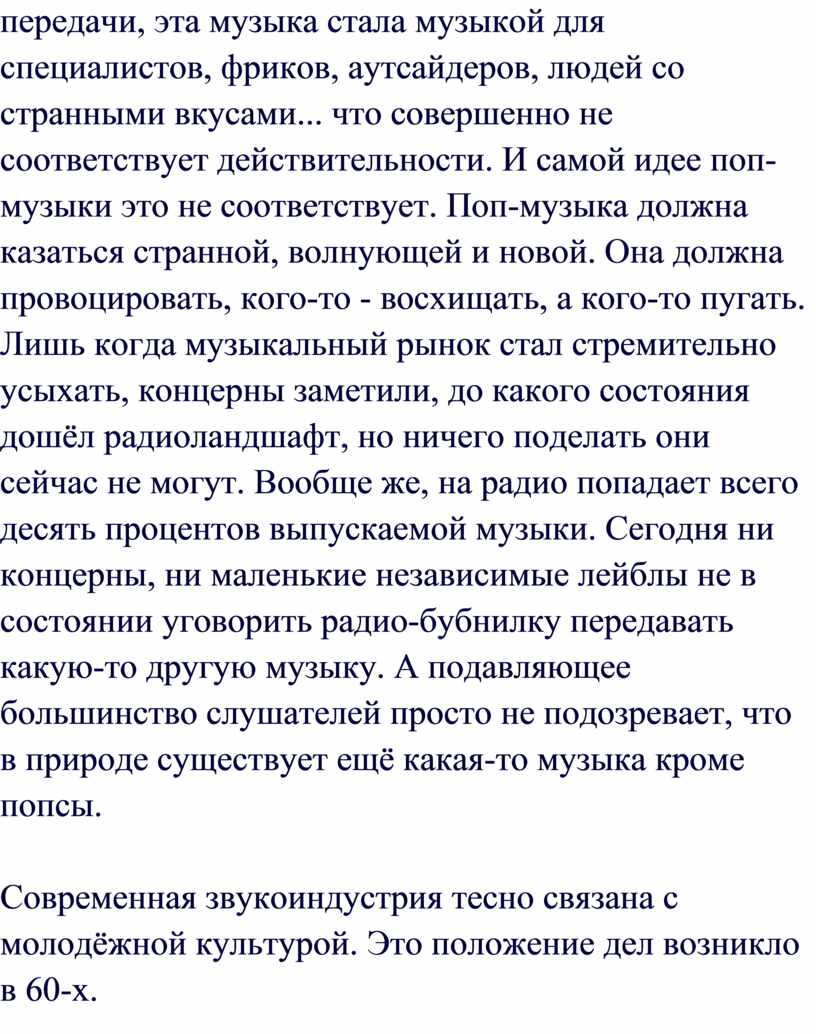 музмэйнстрима в современном обществе (на то, что при этом может быть