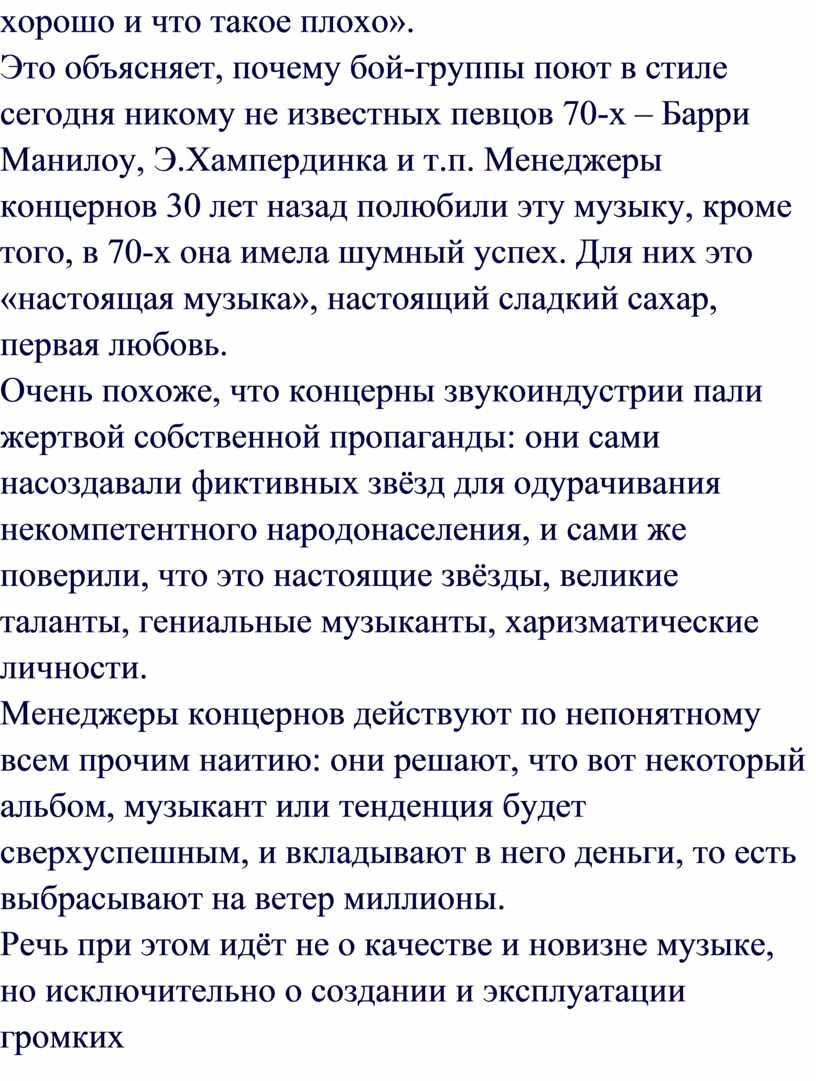певцов 70-х – Барри Манилоу, Э.Хампердинка и т.п. Менеджеры концернов 30 лет