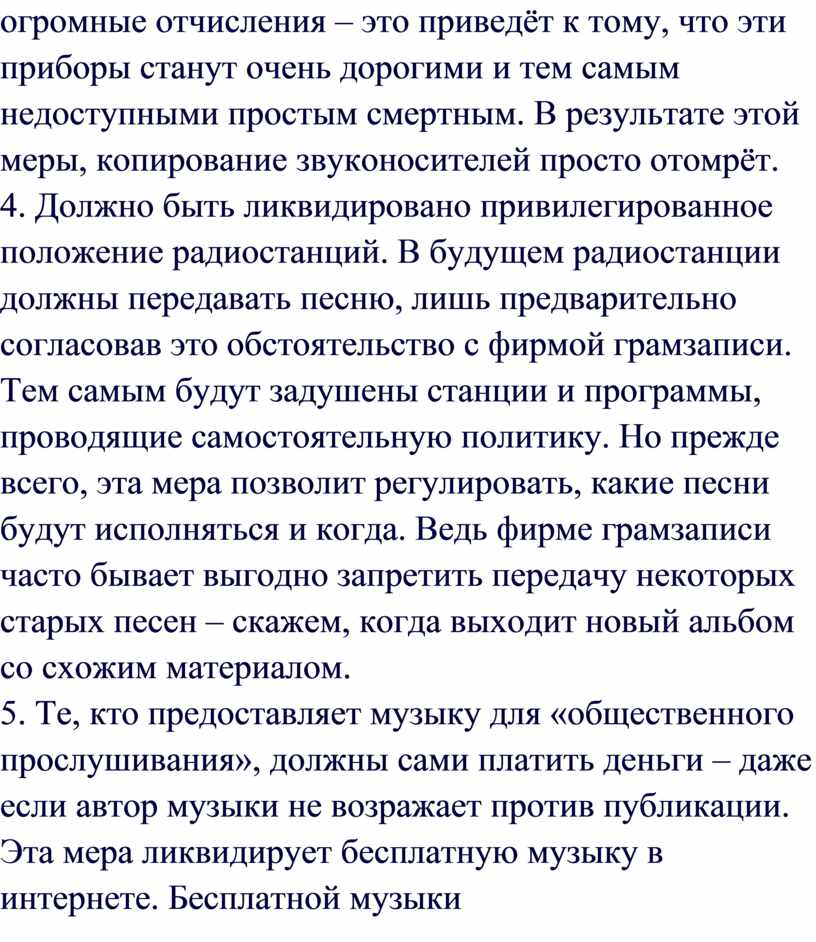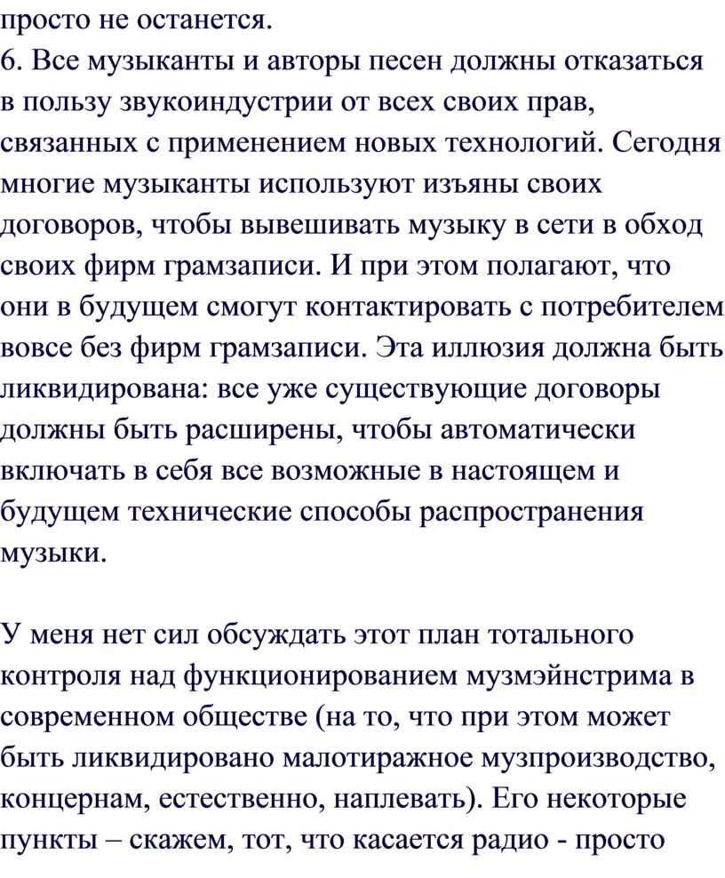 6. Все музыканты и авторы песен должны отказаться в пользу звукоиндустрии от