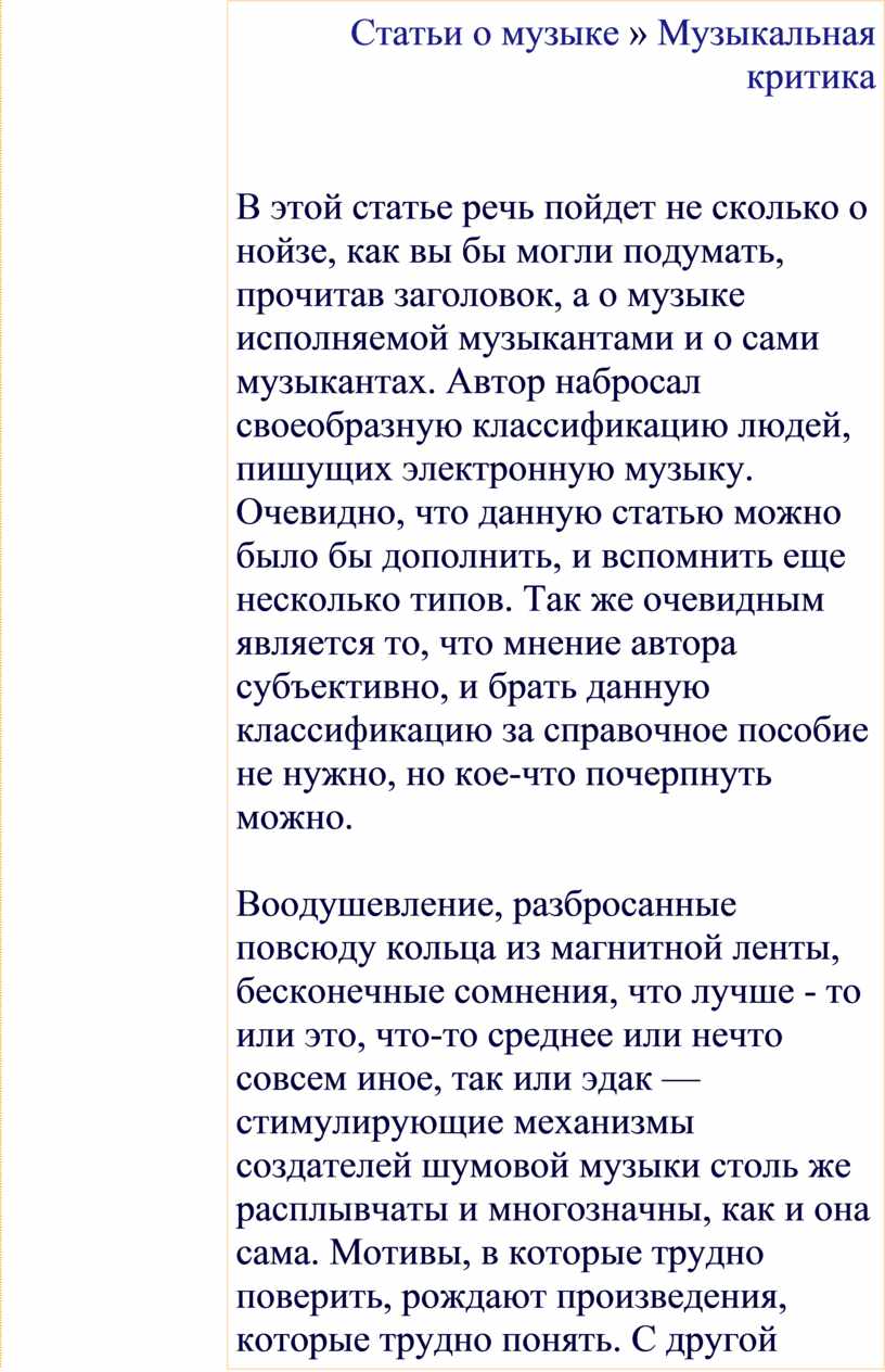 Статьи о музыке » Музыкальная критика