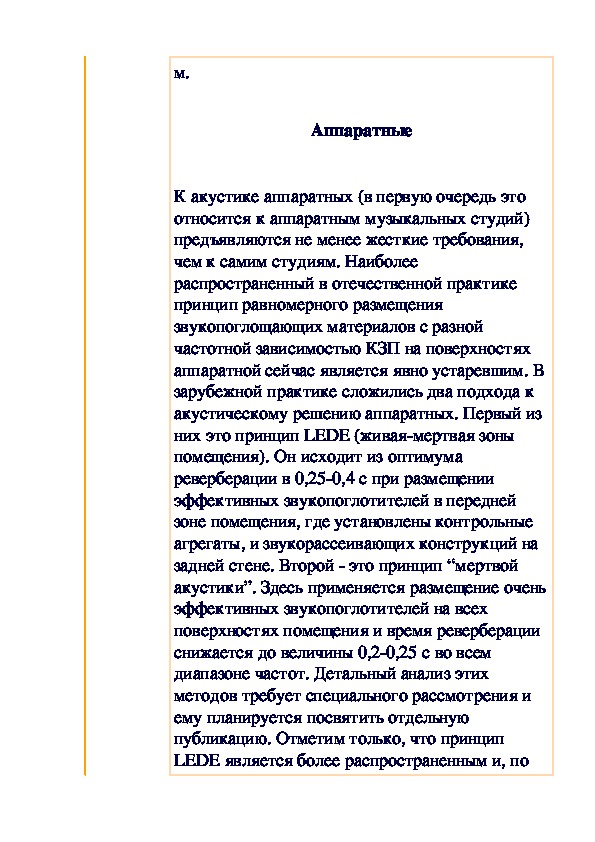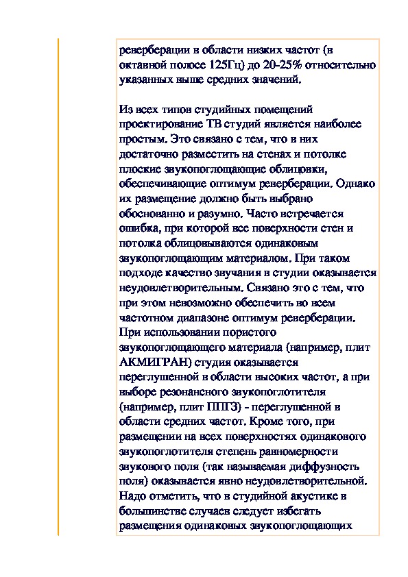 детали размещения облицовок, соотношение ихплощадей определяются акустическим