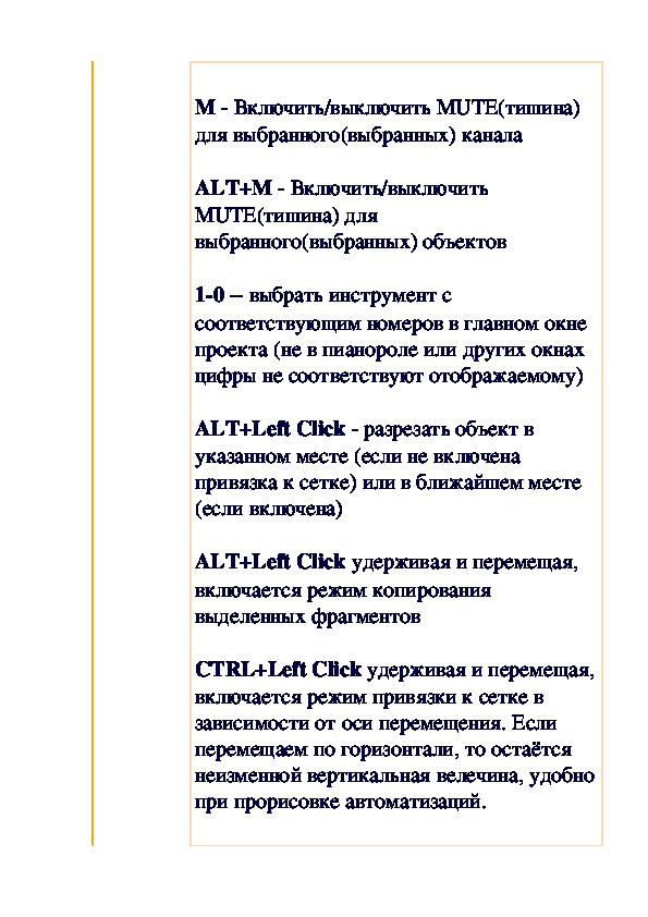 ALT+M - Включить/выключить MUTE(тишина) для выбранного(выбранных) объектов