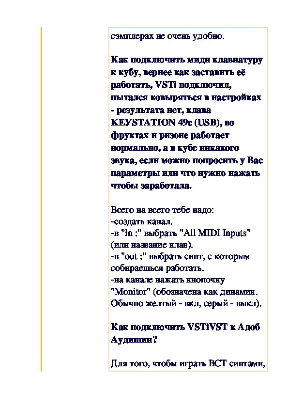 F4 - VST Connections (окно выбора входов выходов для записи, воспроизведения, и мониторинга. Необходимая вещь, если звучка многоканальная)