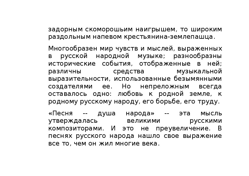 Не сразу она стала такой, какой мы ее знаем сейчас. В далекие времена Киевской, а затем и Московской Руси она звучала то гусельным перезвоном народных певцов-сказителей, то задорным скоморошьим наигрышем, то широким раздольным напевом крестьянина-землепашца.