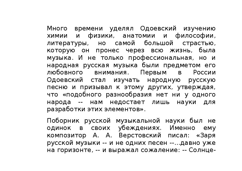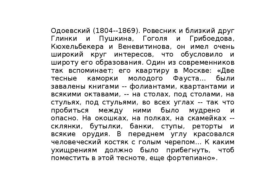 поместить в этой тесноте, еще фортепиано».Много времени уделял Одоевский изучению