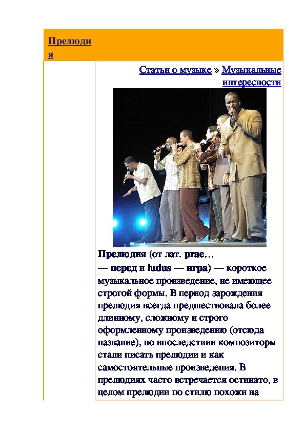 другие — к жанру прелюдий,