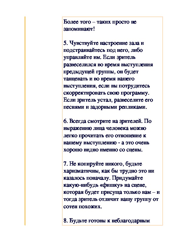 1. Вы оказались на сцене в первуюочередь для зрителя – поэтому,