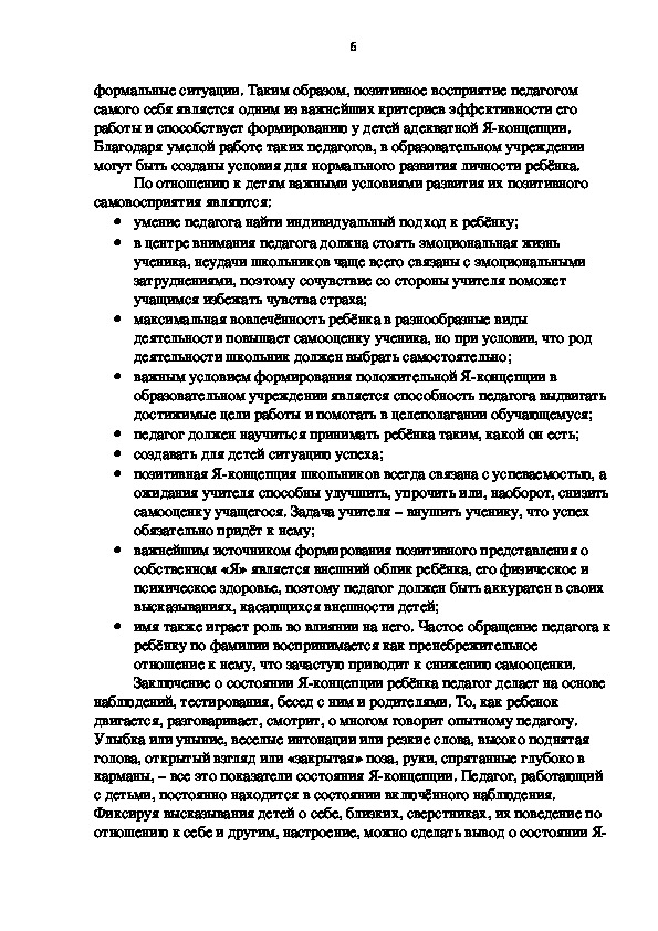 Заключение о состоянии Яконцепции ребёнка педагог делает на основе