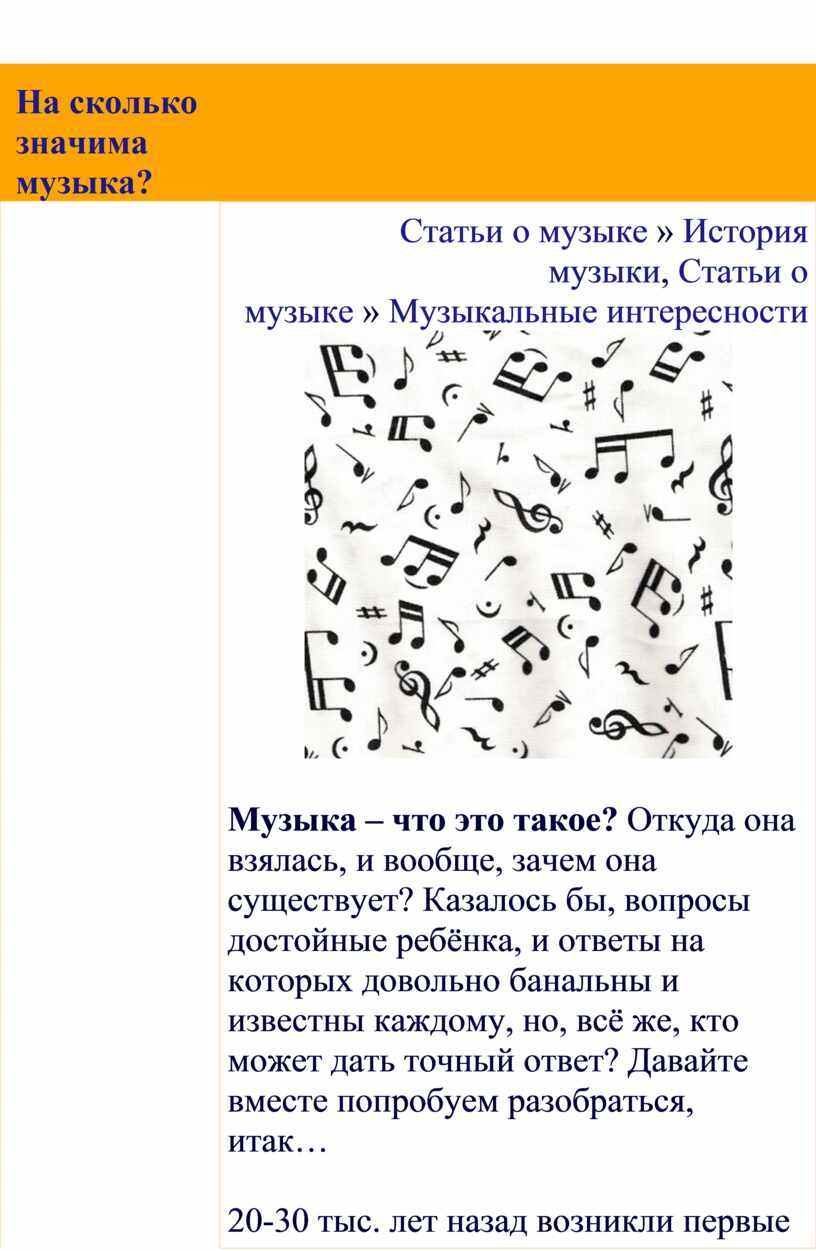 сочиняют и слушают ее с тех пор, как зародилась культура. Более 30 тыс. лет