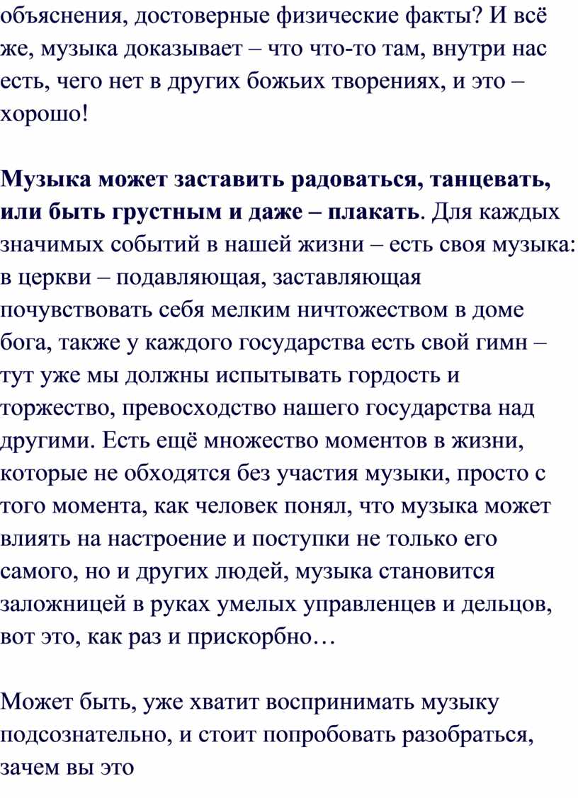составляющей музыки, но и процессы, благодаря которым она эмоционально