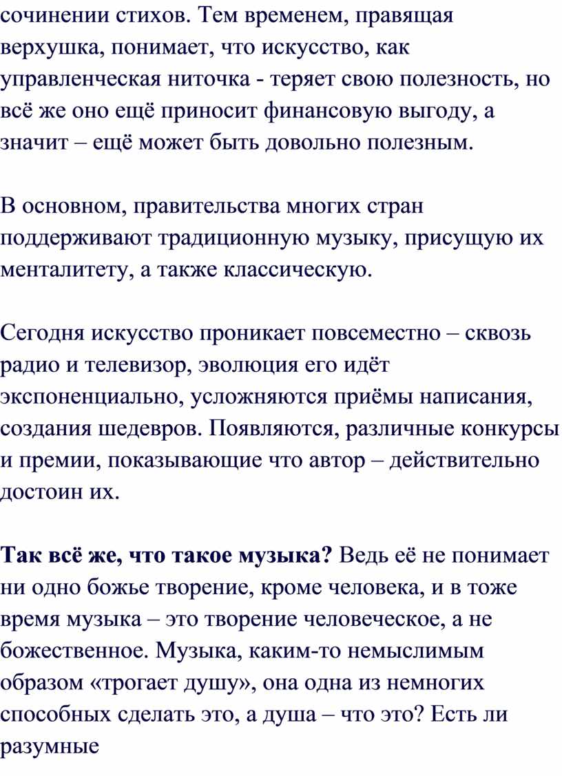 Музыка вечна, и развитие человечества без нее немыслимо.